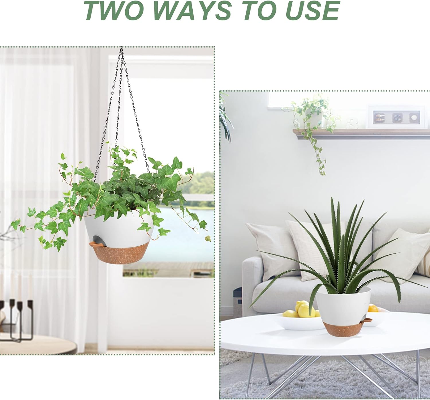 Hanging Planters for Indoor Outdoor Plants, 2 Pack Self Watering Hanging Pot with Drainage Holes & Removable Tray (White, 8'')