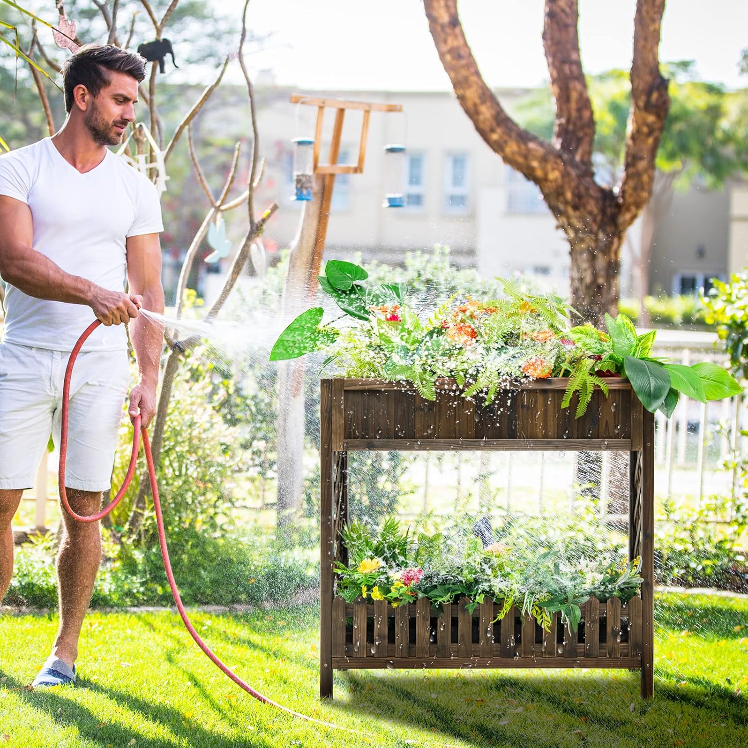 - đŞ´ăWide ApplicationsăWith natural colors and natural wood grains, our 2 tiers elevated wood planter brings a rustic style to your garden. You can grow vegetables, flowers, fruits, herbs in the backyard, balcony, patio, etc.