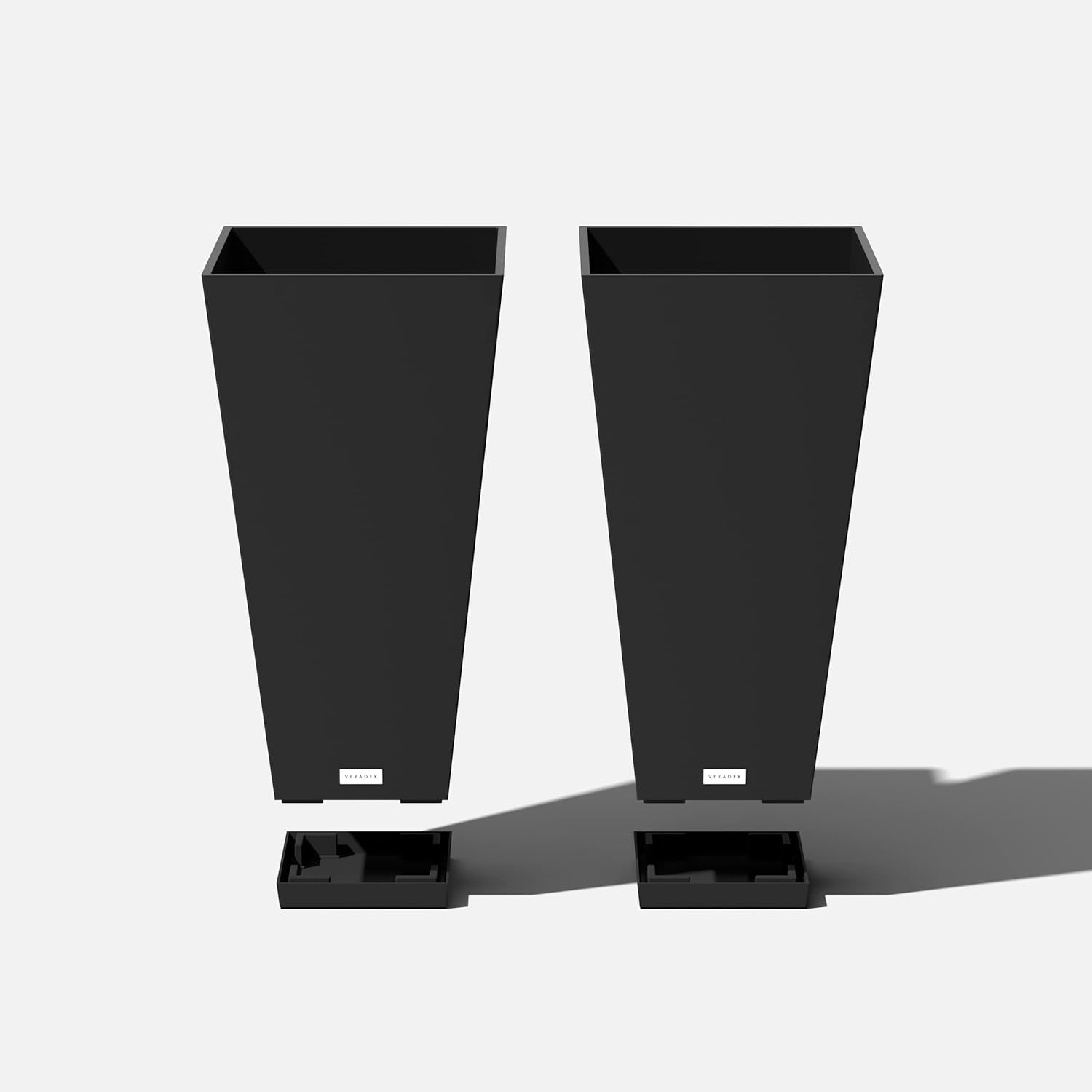 Veradek V-Resin Indoor/Outdoor Taper Planter (Black, 26 inch - 2 Pack with 2 Saucer Trays)