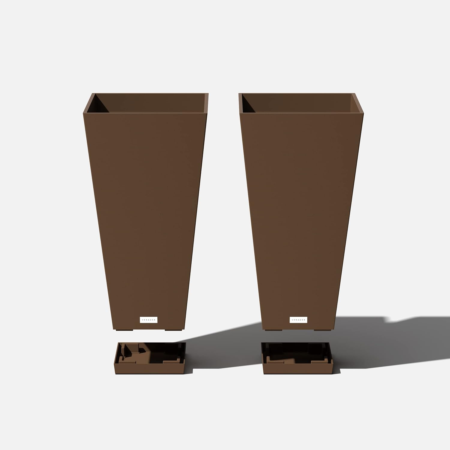 Veradek V-Resin Indoor/Outdoor Taper Planter (Espresso, 26 inch - 2 Pack with 2 Saucer Trays)
