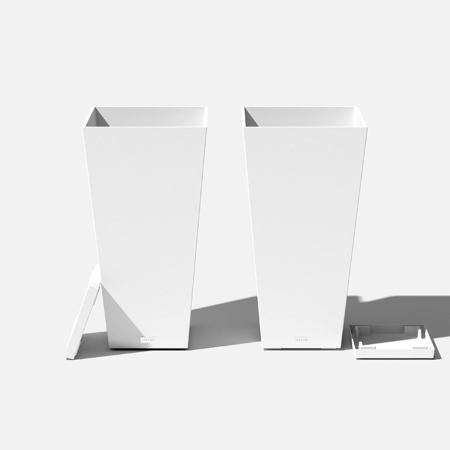 Veradek V-Resin Indoor/Outdoor Taper Planter (White, 30 inch - 2 Pack with 2 Saucer Trays)