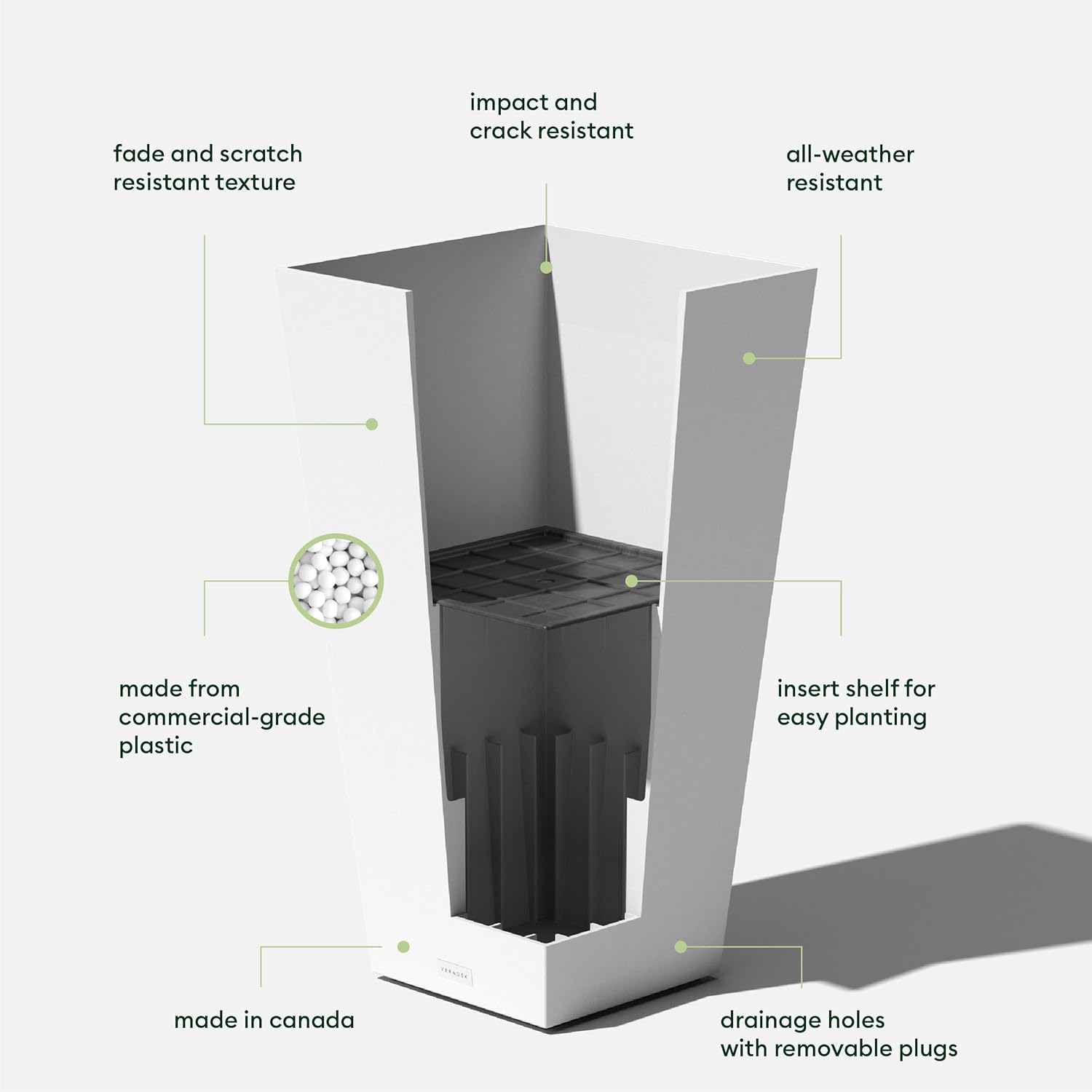 - GARDEN DECOR: Decorate your space with the Veradek Taper planter; Whether you use it as a patio, entrance or railing accent, this strong and sturdy yet lightweight contemporary garden container is the perfect fit with its sharp and modern appeal