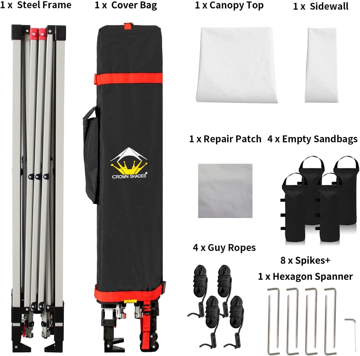 CROWN SHADES 8x8 Pop Up Canopy with 1 Side Wall - Beach Tent with One Push Setup - Outdoor Sun Shade for Events, Parties, Camping - Gazebo with STO-N-Go Cover Bag (White)
