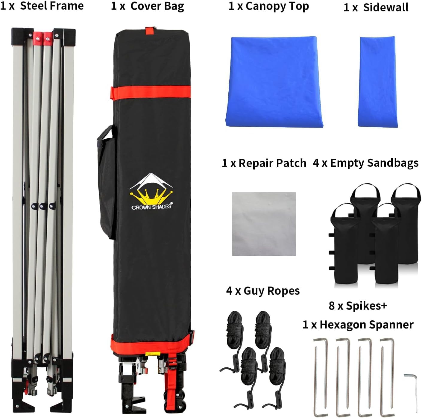 - STO’ N GO SYSTEM - Our lift-free system makes collapsing, storing, and transporting the 8x8 tent a breeze. The 8x8 tents can be stored with the fabric attached, with a specialized pocket for 4 sandbags, 8 stakes, and 4 guy ropes. Integrated wheels in the feet allow easy movement even when the instant shelter tent is set up, by simply lifting the side without wheels. This feature is especially useful for quick setup and takedown at locations like the patio or sports events
