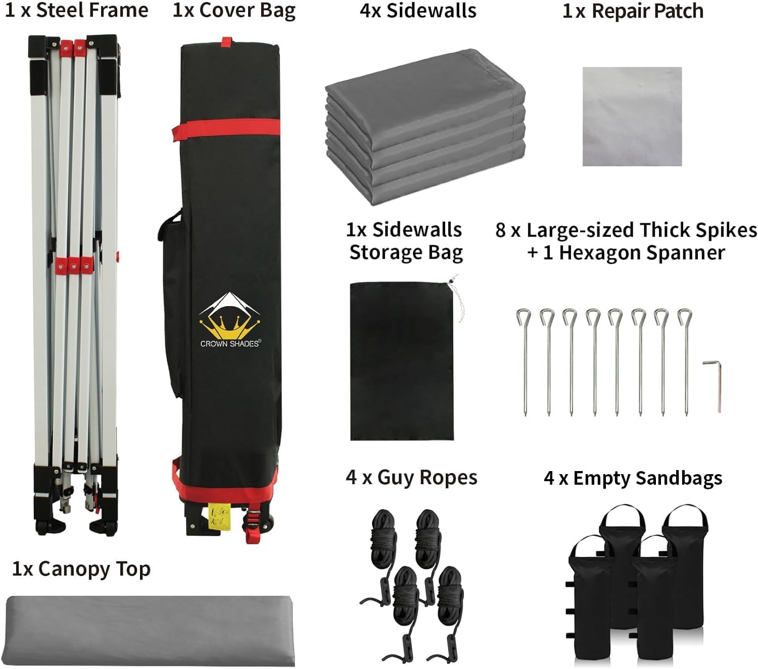 - [STO'N Go Bag]: Transporting and storing camping gear has never been easier than with the newly designed patented STO'N Go Bag. It comes equipped with a specialized pocket designed to hold 8 stakes, 4 guy ropes, and 4 removable wall panels. With its compact size, it can fit comfortably in most vehicles, so you can take your canopy with you wherever you go.
