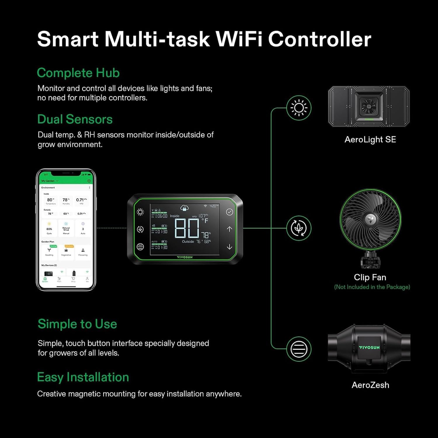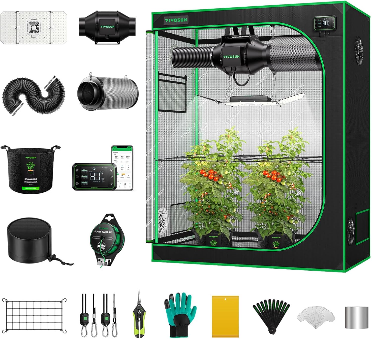 - Complete Kit Included: 48"x24"x60" Grow Tent; AeroLight SE 200W LED Grow Light×1; 4" AeroZesh G4 Fan; GrowHub E42A Controller; 4" Black Carbon Filter; 4" Prefilter; 4" 8ft Ducting; 4" Clamp×2; 4*2ft Trellis Net; 5Gal Black Grow Bag×5; 4" Vent Cover×2; Pruning Shears; 100m Twist Tie; Sticky Trap×20; Plant Tag×20; Hook & Loop Cable Tie×10; 5ft Aluminum Ducting Tape; Garden Gloves; Rope Hanger×2