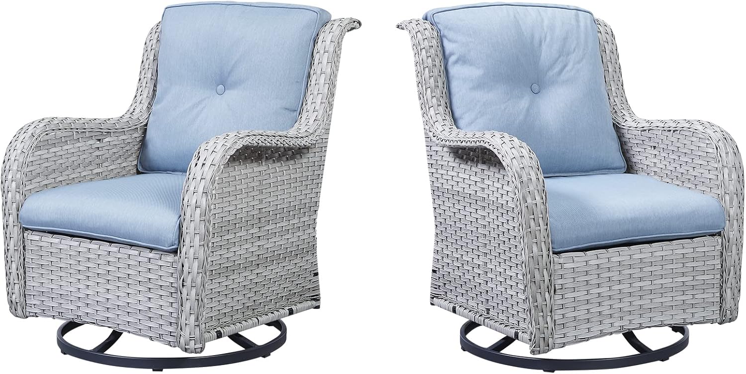 Outdoor Swivel Rcoker Patio Chairs - Outdoor Swivel Patio Chairs Set of 2 Wicker Chair Patio Furniture Sets with Covered Cushion for Porch Deck Balcony Garden, Baby Blue