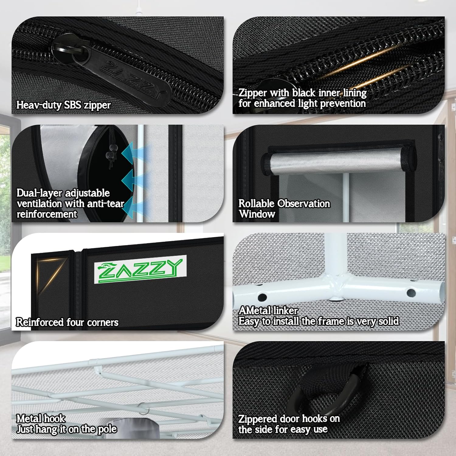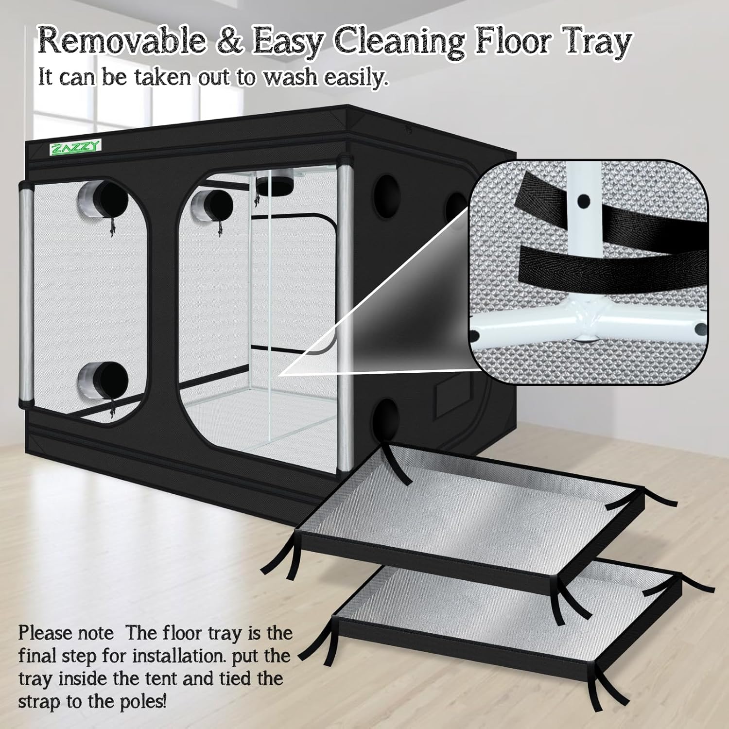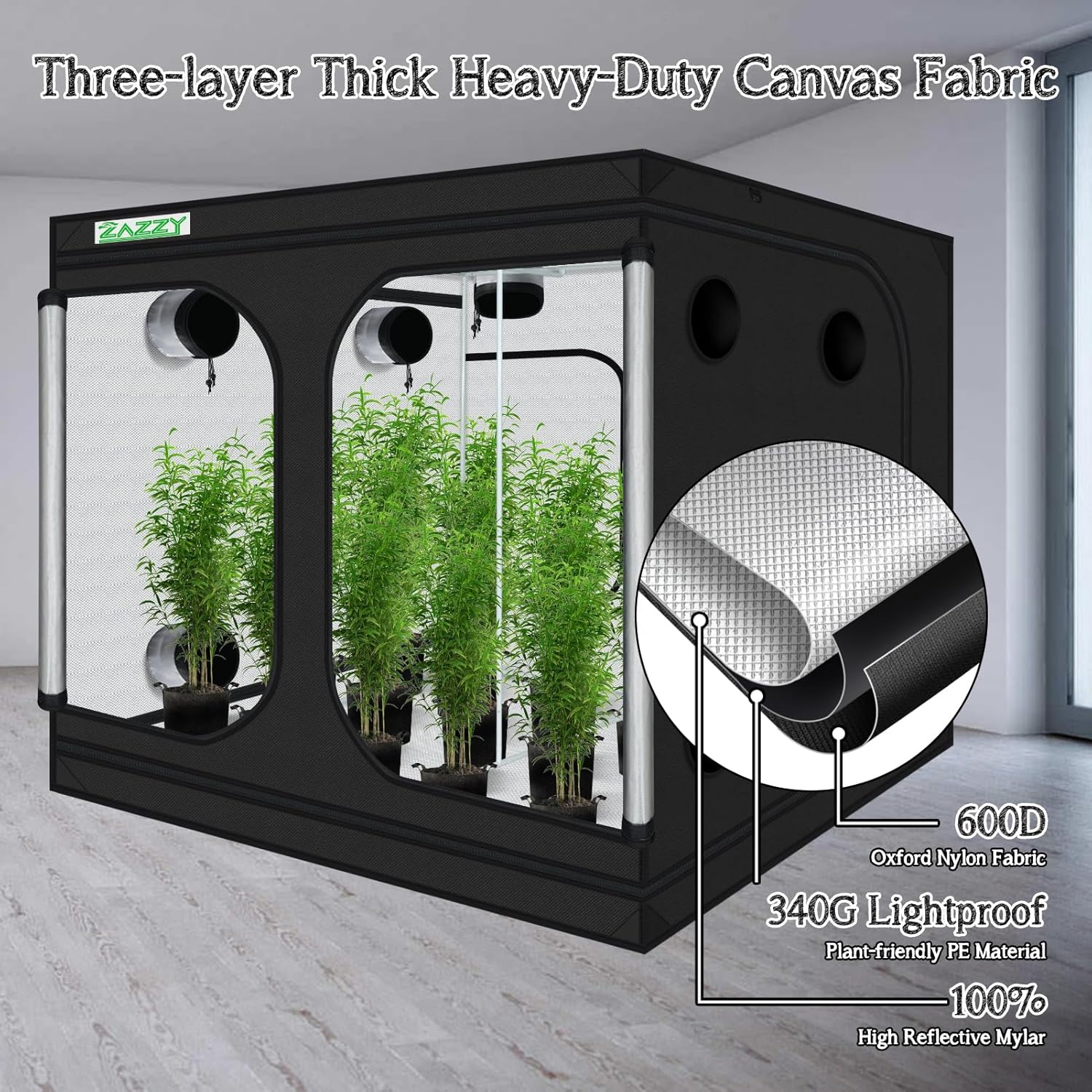 zazzy Growing Tent, 120"x120"x78" Grow Tent High Reflective Mylar with Observation Window and Removable Floor Tray for Hydroponics Indoor Plant Growing 10x10