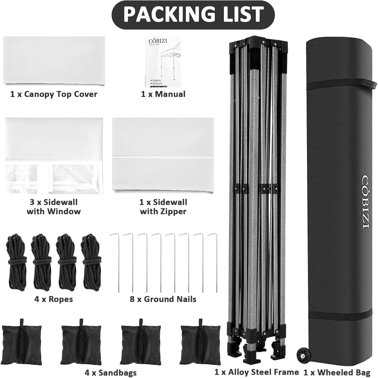 COBIZI 10x10 Pop Up Canopy with 4 Sidewall,Heavy Duty Canopy UPF 50+ All Season Wind Waterproof Commercial Outdoor Wedding Party Tents for Parties Canopy Gazebo with Roller Bag (10 x 10 ft White)