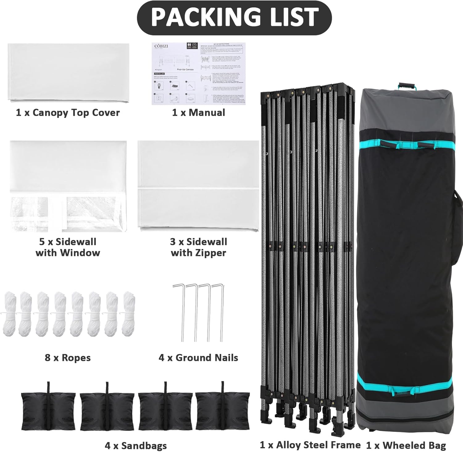 COBIZI 10x30 Pop Up Canopy with 8 Sidewall,Heavy Duty Canopy UPF 50+ All Season Wind Waterproof Commercial Outdoor Wedding Party Tents for Parties Canopy Gazebo with Roller Bag(10 x 30 ft White)