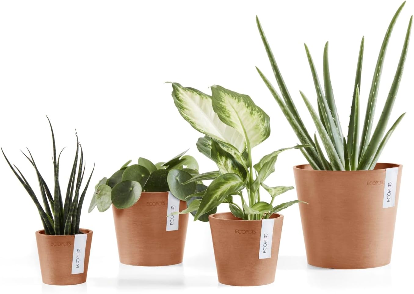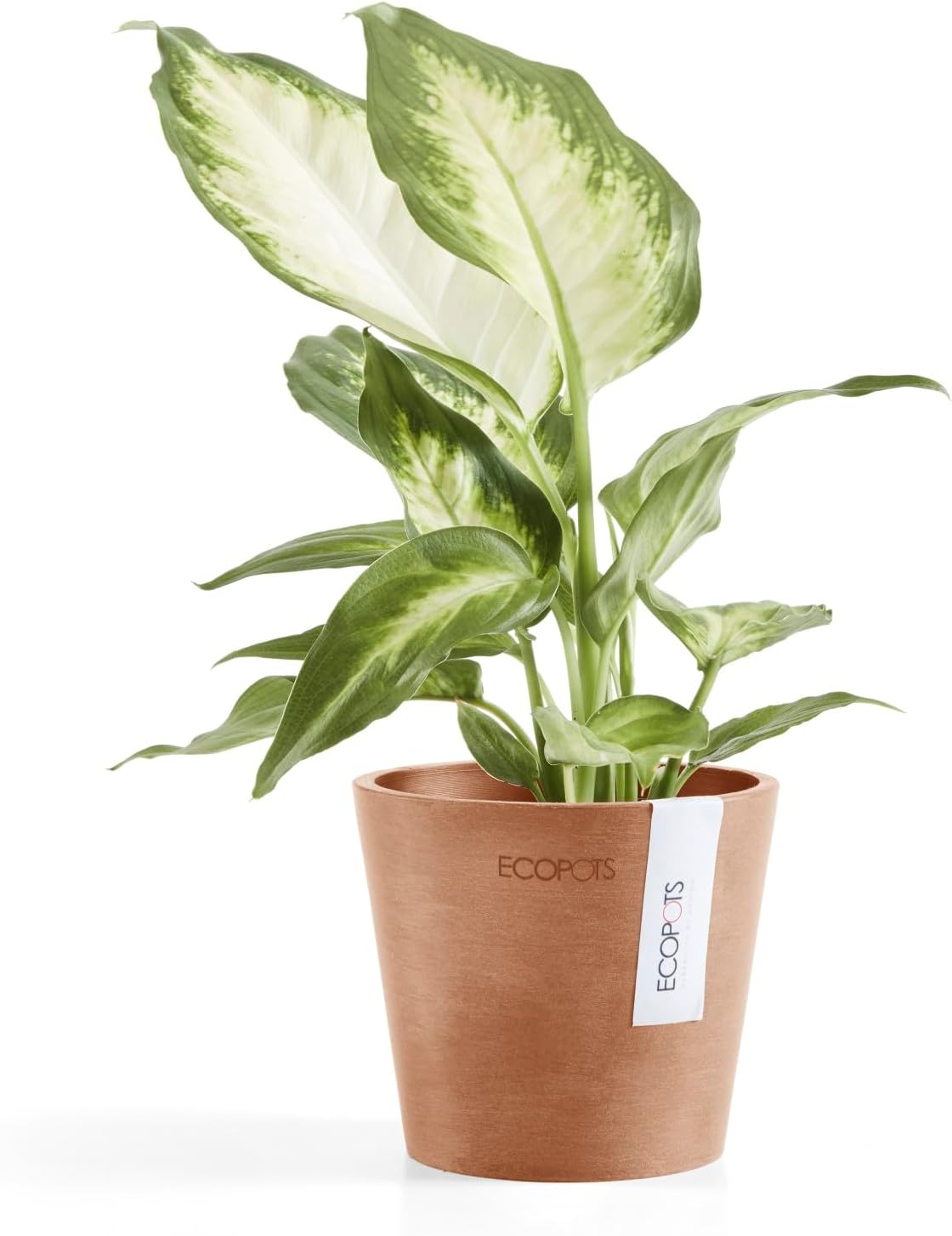 Ecopots Amsterdam Mini Durable Modern Round Recycled-Based Composite Flower Pot Planter, Terracotta Color, 4"