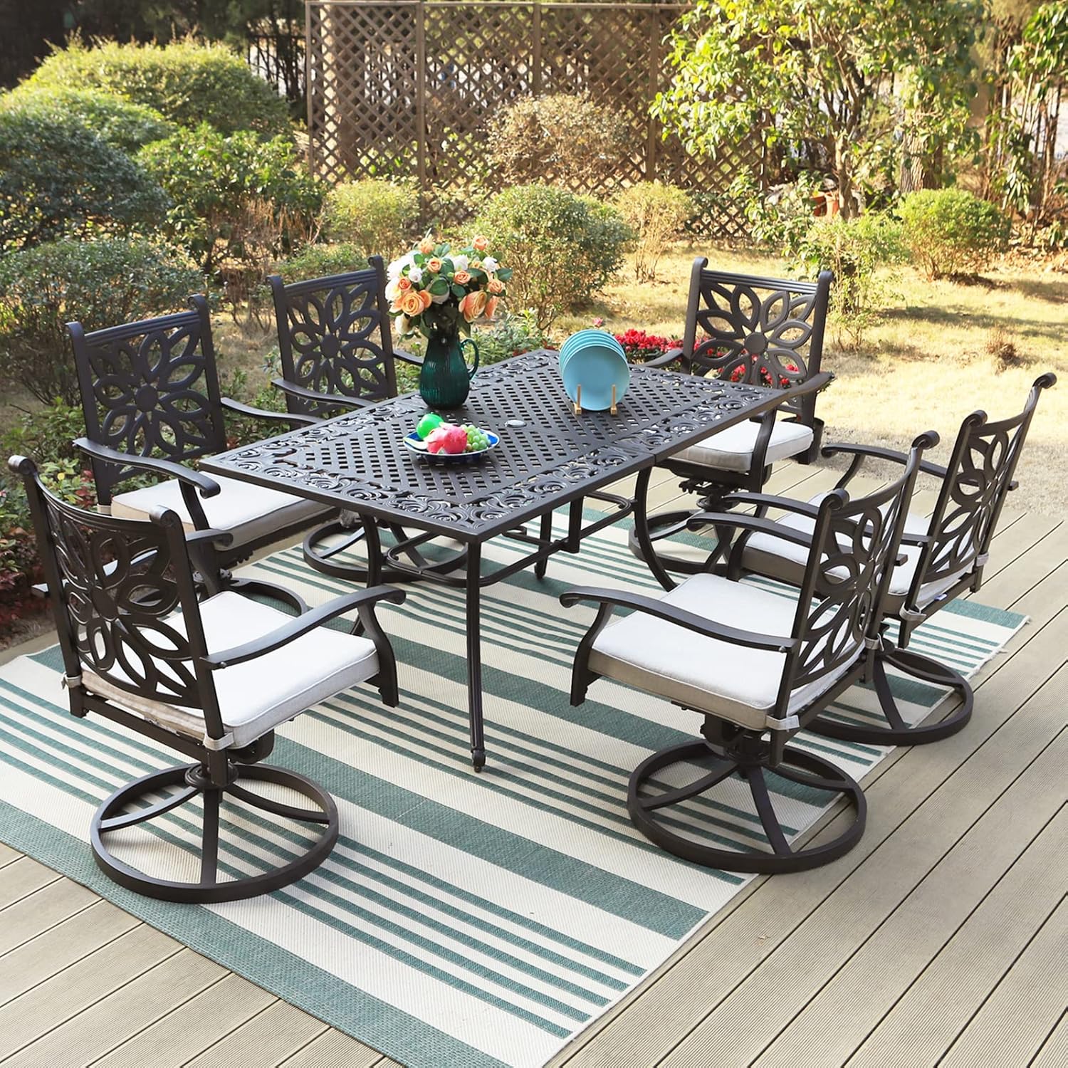 - Premium Material: The rectangular patio dining table is made of high-quality aluminum and aluminium alloy by traditional cast aluminium technology, which is beautiful and elegant. The natural alumina protective film on the surface of cast aluminum can make it have good rust resistance. In addition, the special powder-coating processing can further strengthen its performance