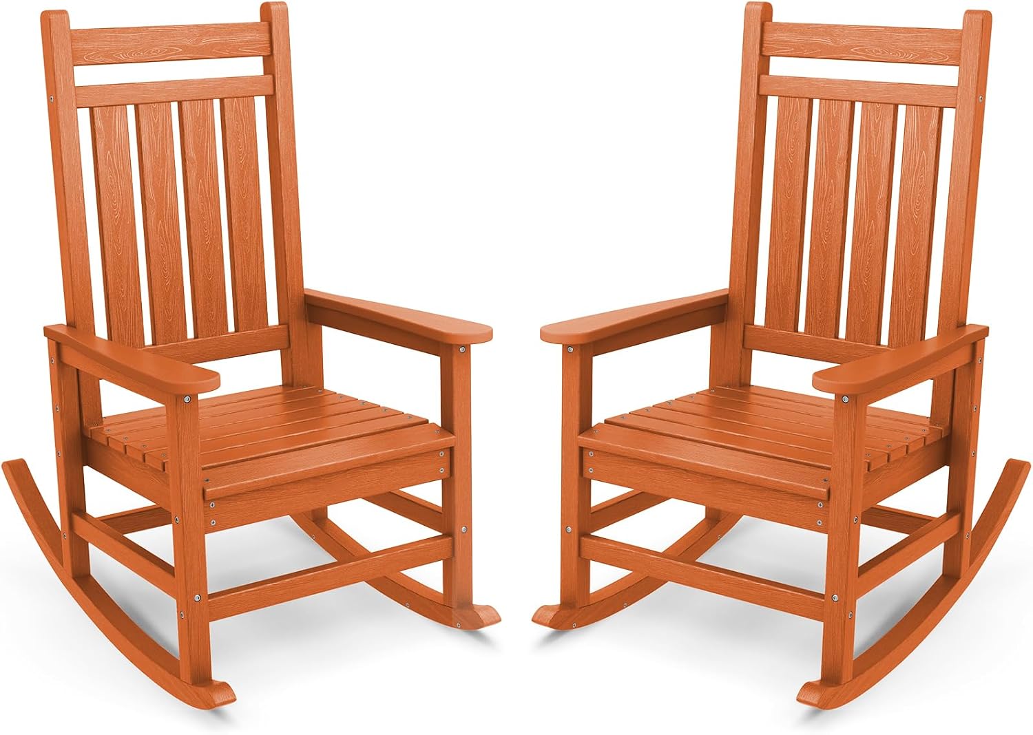SERWALL Outdoor Rocking Chair Set for Porch (Chair Set of 2, Light Orange)
