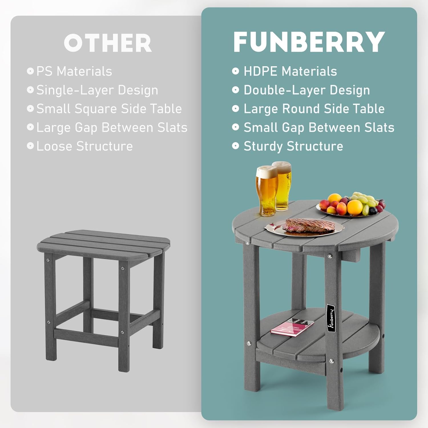 FUNBERRY Outdoor Adirondack Side Table, 2-Tier Patio End Tables, HDPE All Weather for Outside