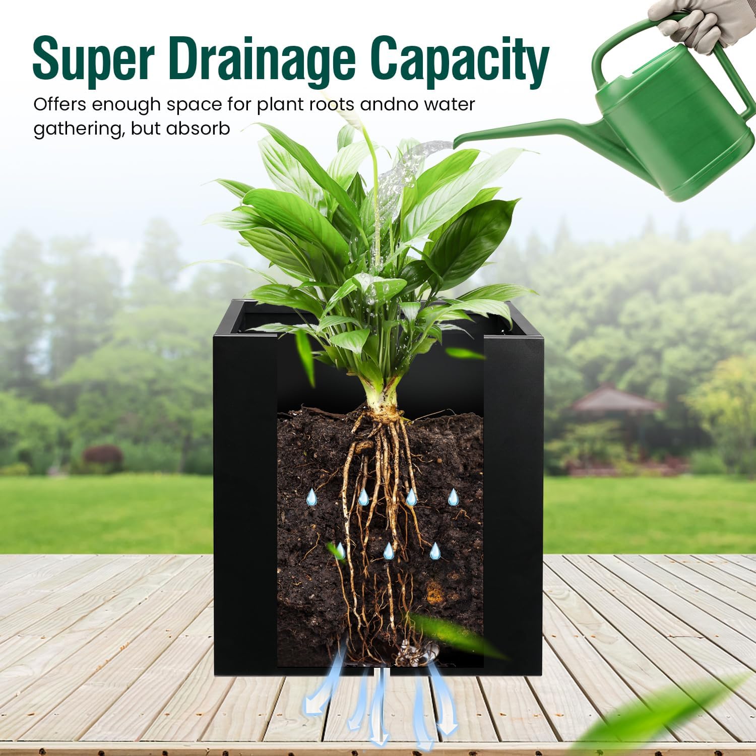 - [ Black Square Planter] Black Square Planter is made of galvanized steel with black powder coating. Black Square Planter is wear-resistant, corrosion-resistant and long lifetime.