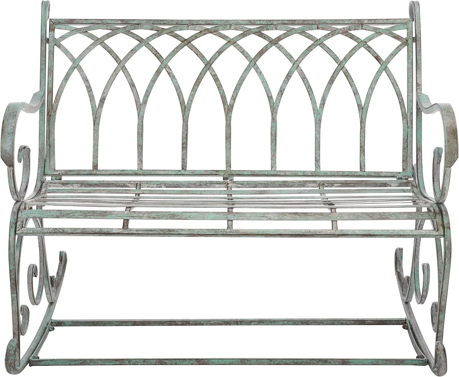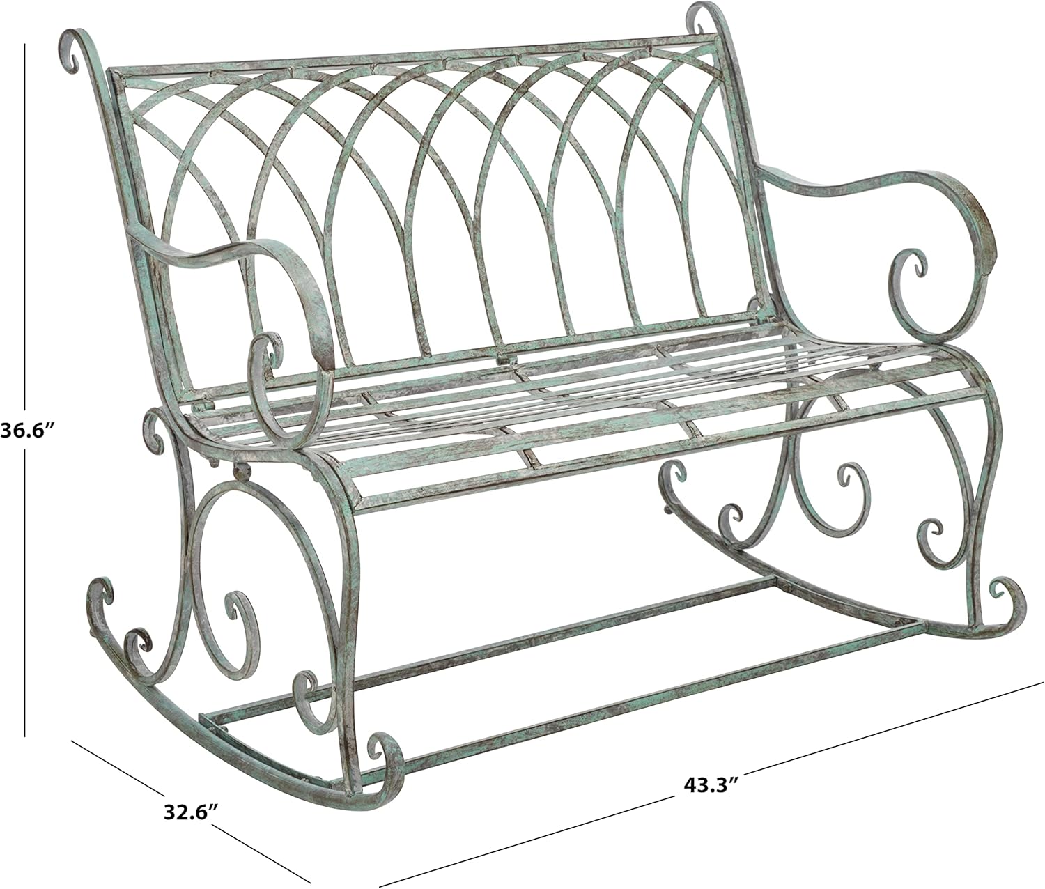 SAFAVIEH Outdoor Collection Ressi Victorian Antique Dark Green Wrought Iron Rock Bench