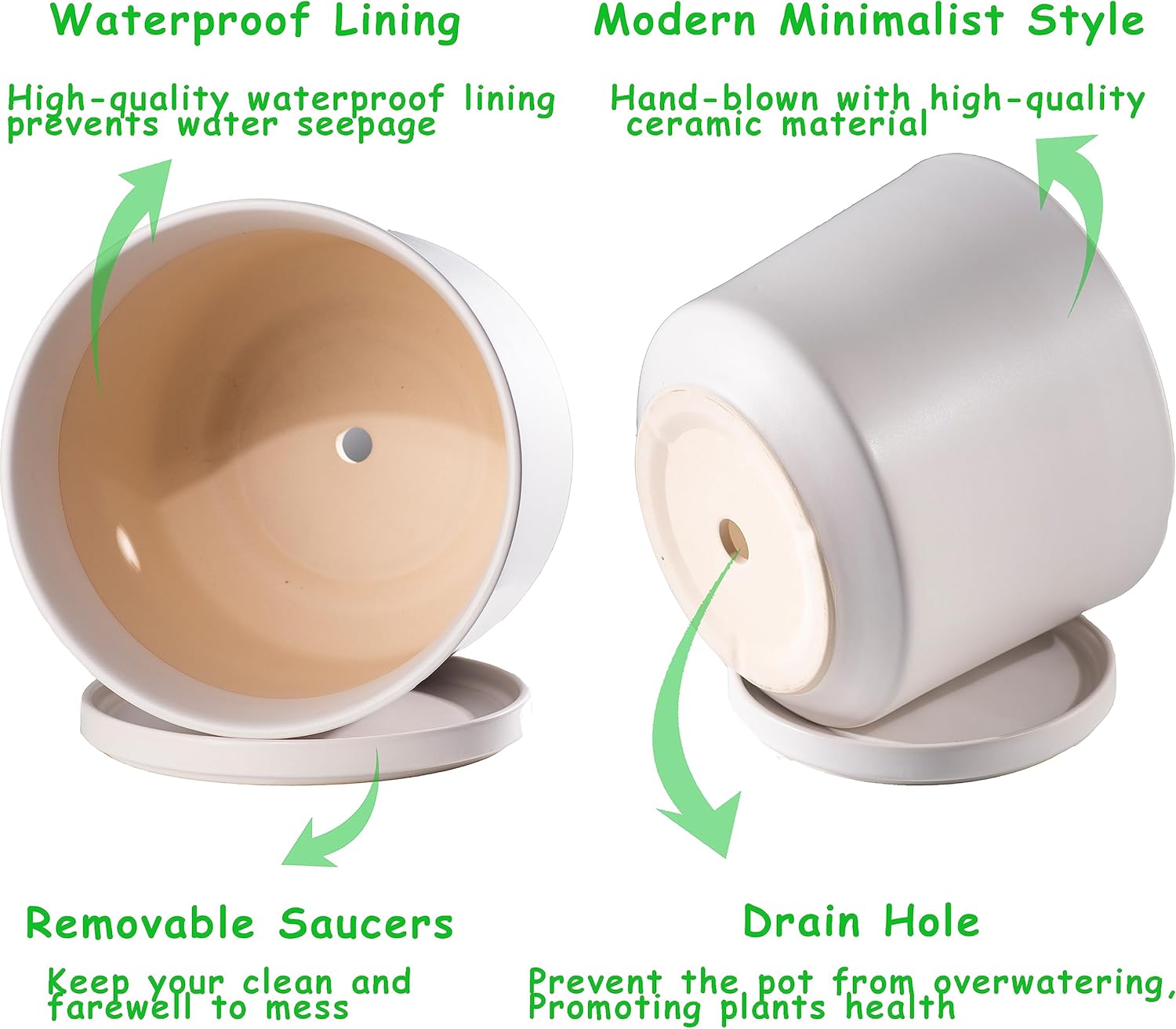 - 【Premium Ceramic Material】 Ekirlin plant pots are stoneware baked at high temperatures, so they can withstand extreme temperatures. Manufactured through appropriate synergy between traditional manual techniques and ergonomics, from the top to the bottom, these flower pots show elegant and natural lines