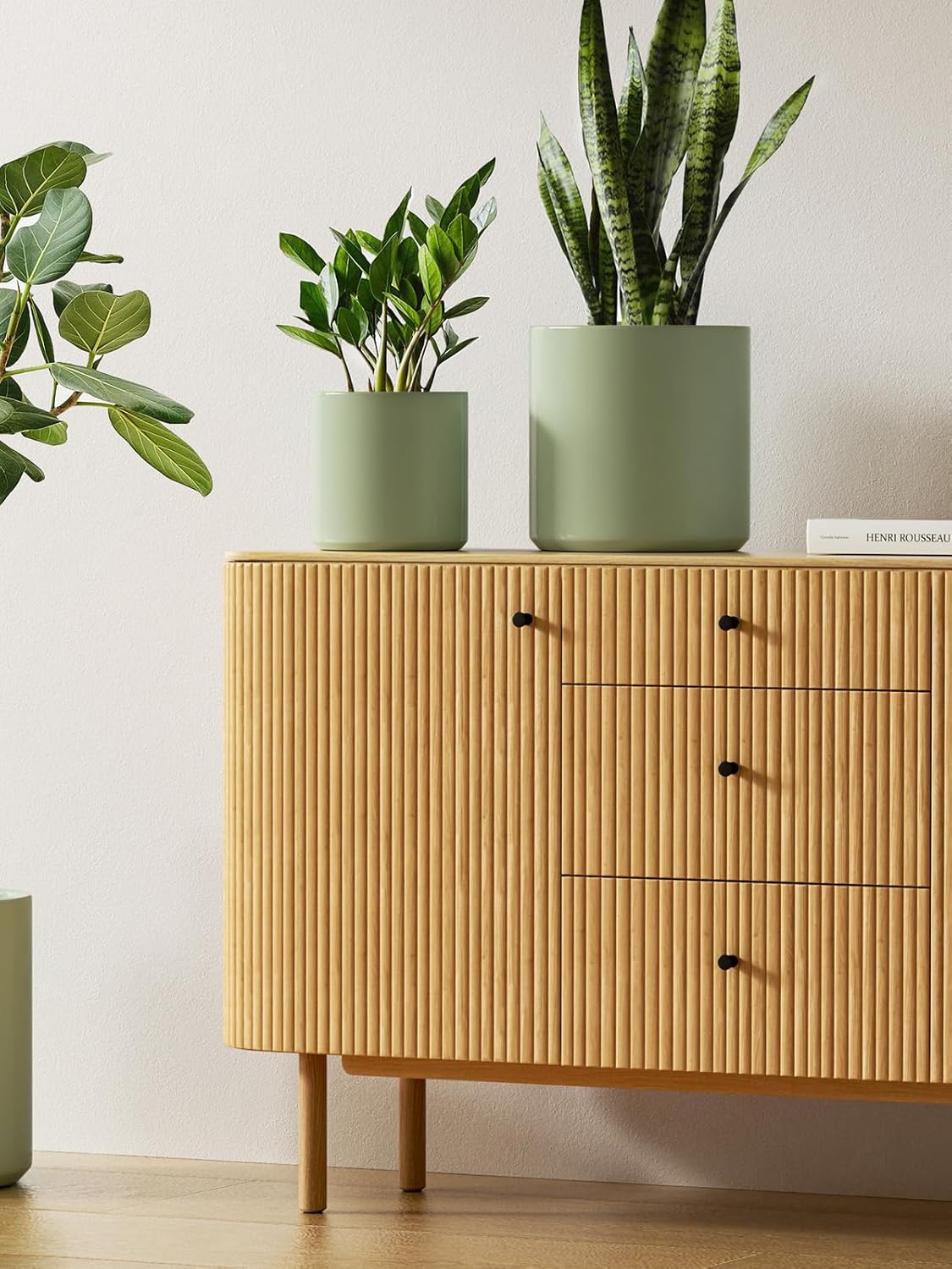 - Multiple Sizes: This collection includes planters in three dimensions; large (10 inch diameter and 10 inch height), medium (8 inch diameter and 8 inch height), and small (6 inch diameter and 6 inch height); suitable for a variety of indoor plants such as snake plants, African violets, moss poles; the spacious design ensures ample room for your plant companions to thrive and flourish in a healthy environment