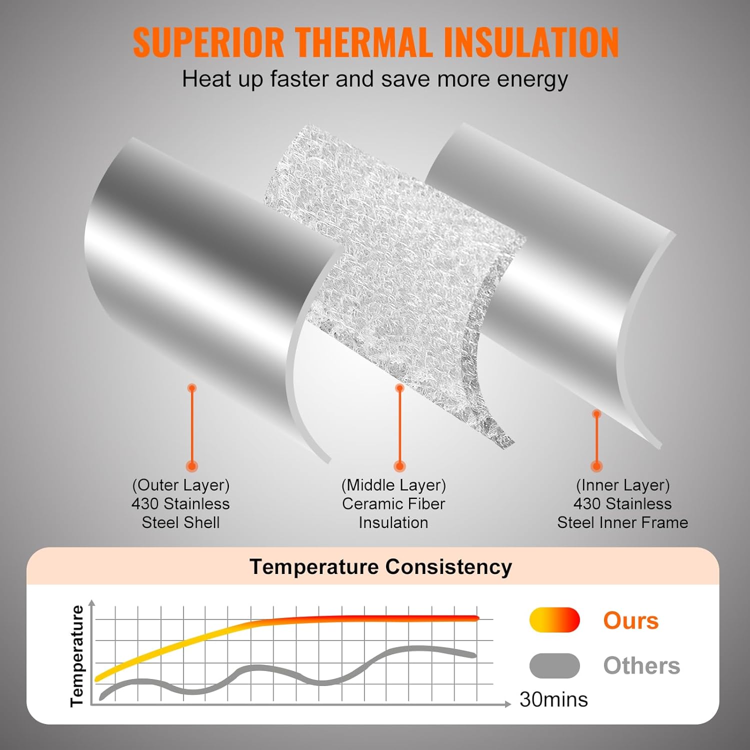 - Retain Heat for Extra Taste: The portable pizza oven for outside is CSA certified and built with 430 stainless steel inner frame, ceramic fiber insulation cotton, and cold-rolled sheet shell for enhanced quality. This 3-layer thermal insulation structure provides the best heat preservation, allowing you to enjoy your food quickly.