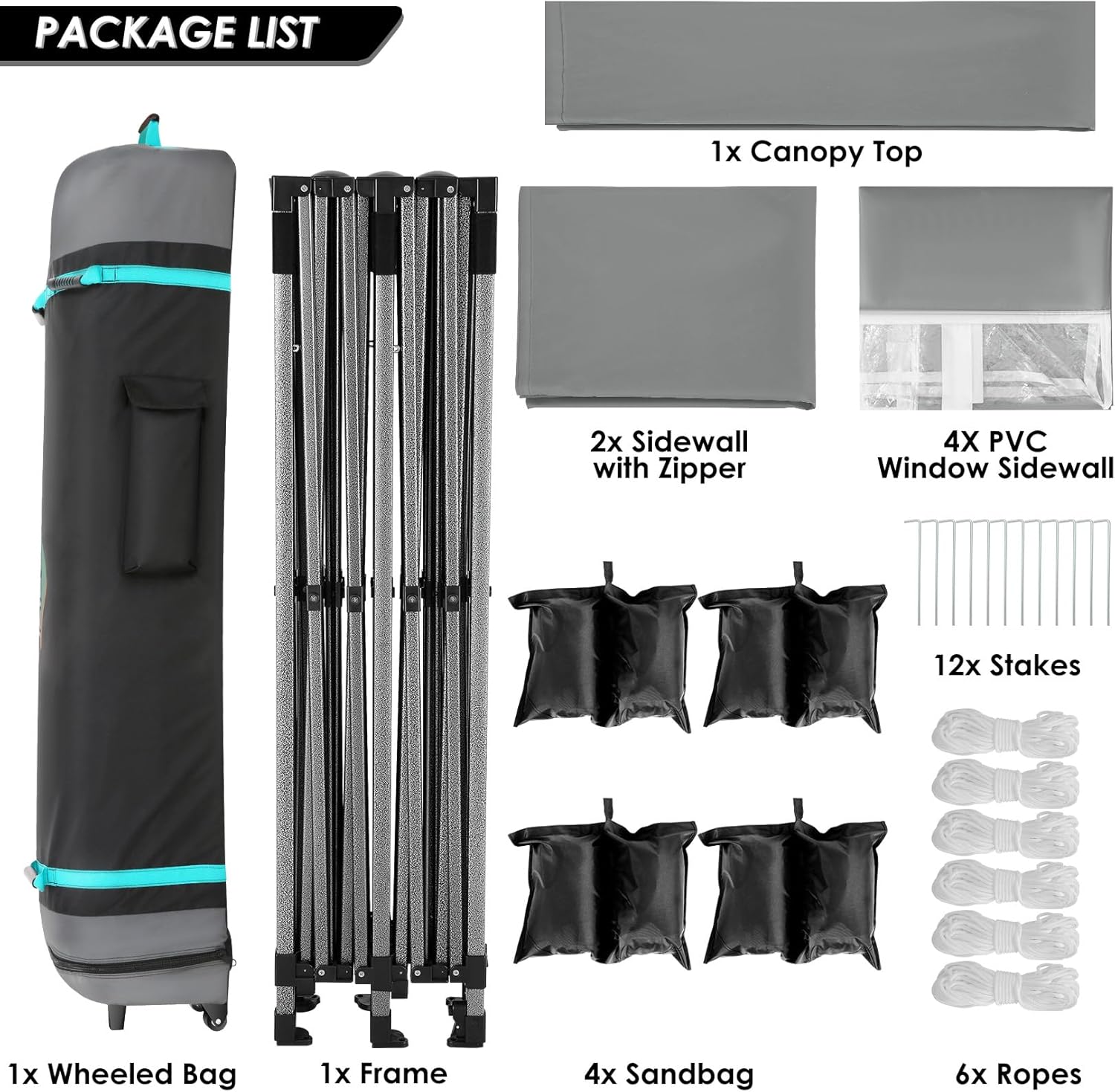 - 【Package Includeds】1x 10x20 Folding Frame, 1x Top cover, 6 x Sidewalls ( 2 Sidewall with Zipper and 4 Sidewall with Window ), 6x Sandbags, 12x Stakes, 6x Ropes, 1x Roller bag, 1x Manual. If you have any questions, please contact us