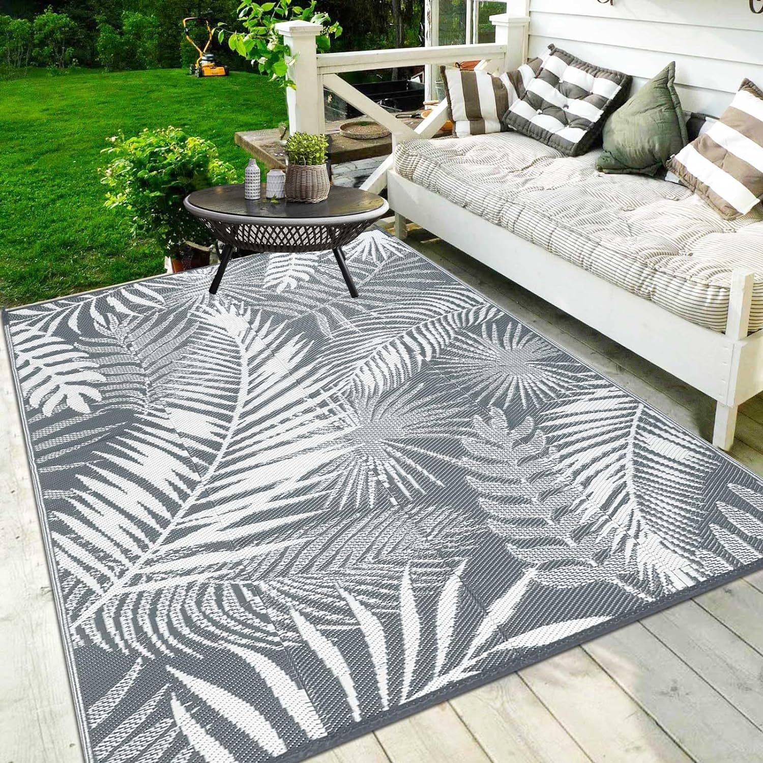 - Reversible Outdoor Rugs : The 5 x 7 feet porch rug with the classic refreshing palm leaf pattern which is full of holiday style, which makes it easy to use on patio, deck, beach, backyard. And this outdoor area rug is reversible, two-sided design allows you to have two different looks
