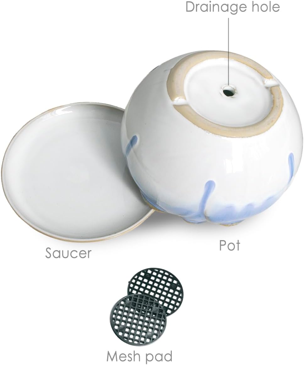 - QUALITY: Durable rich glazed ceramic; smooth finishing, drainage hole and Saucer/Tray. Suitable for places such as desks, window sills, bathrooms, and countertops etc.