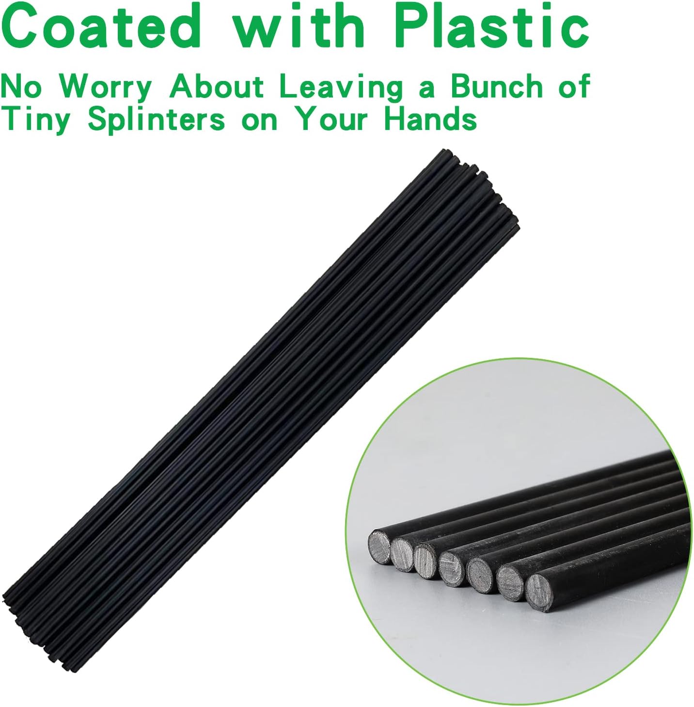 - Surface Treatment: Coated with plastic, no worry about leaving a bunch of tiny splinters on your hands after using them, No irritating/ scratching your hands when handling. Reliable garden tunnel hoops.