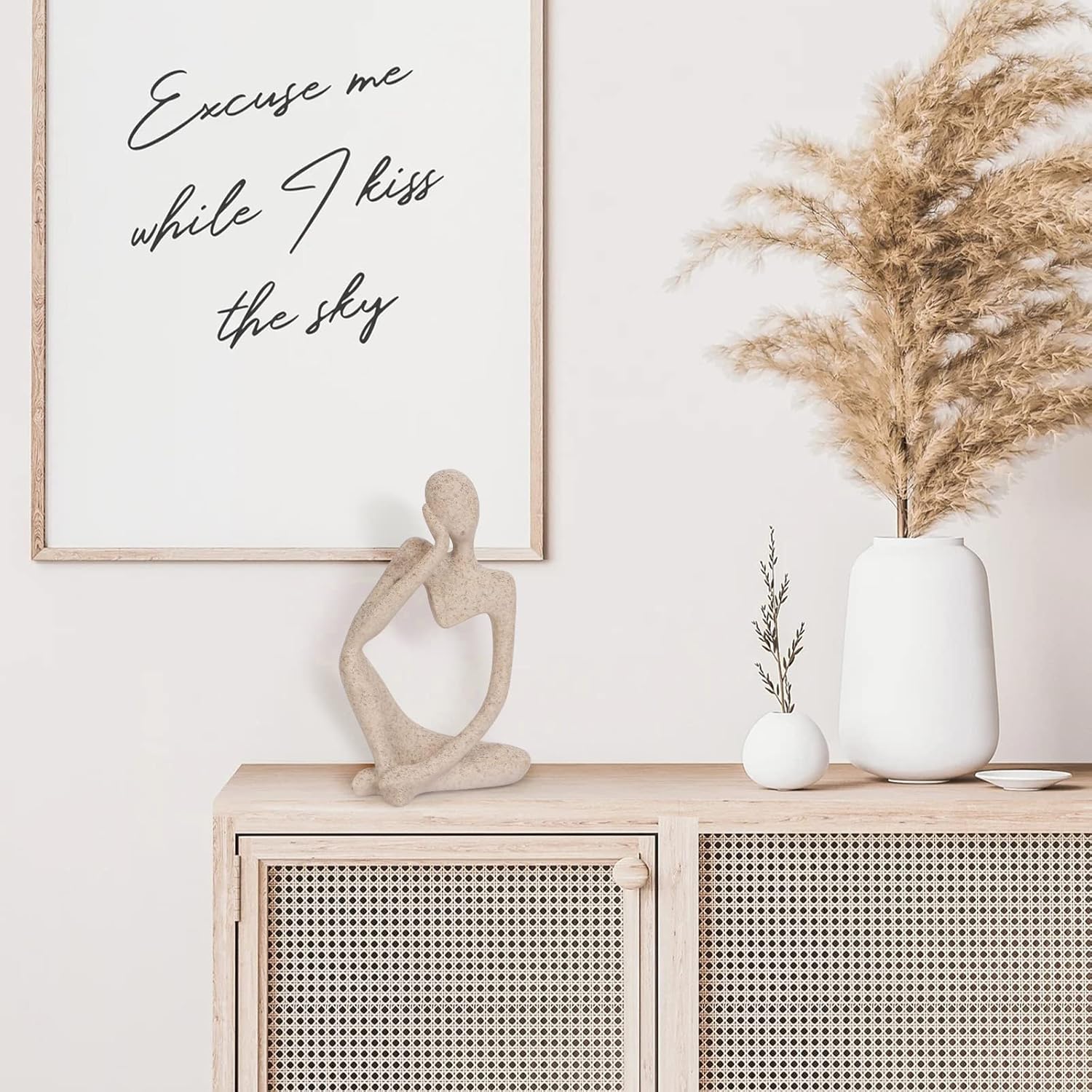 INNOLITES Boho Decor Thinker Statue Abstract Art Sculpture, Sandstone Resin Collectible Figurines for Home Living Room Office Shelf Decoration (Sandstone Left)