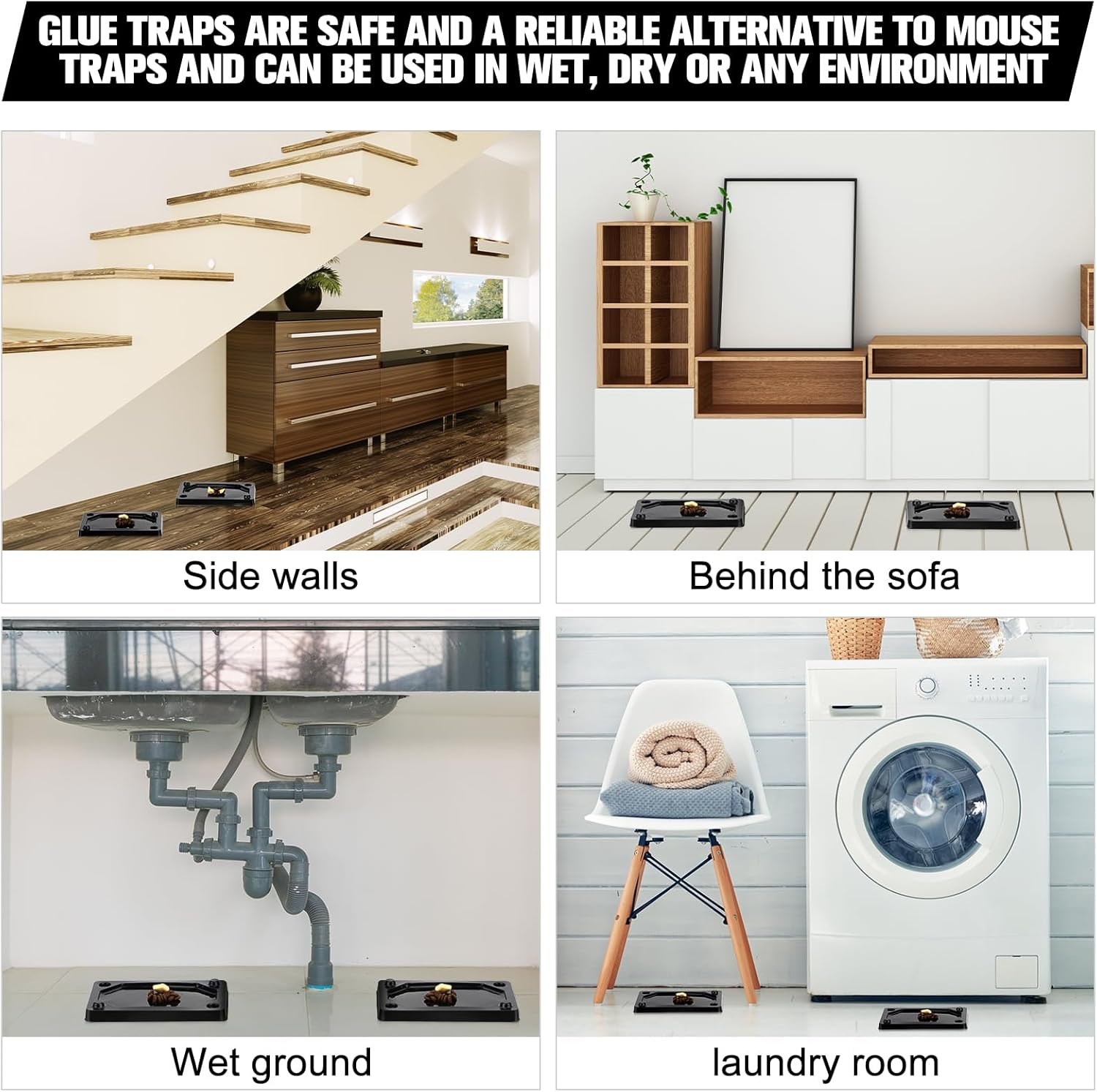 - Easy to Use: our mouse and snake glue traps can be placed in places where mice, snakes, rodents or insects are often infested, with the glue surface facing up, and 3 or 4 traps can be placed in a cage, or the mouse trap; Put some food in the middle to attract insects or rodents, such as bread crumbs, cheese, ham, candy, fruit, ice cream, to increase the probability of gluing rats