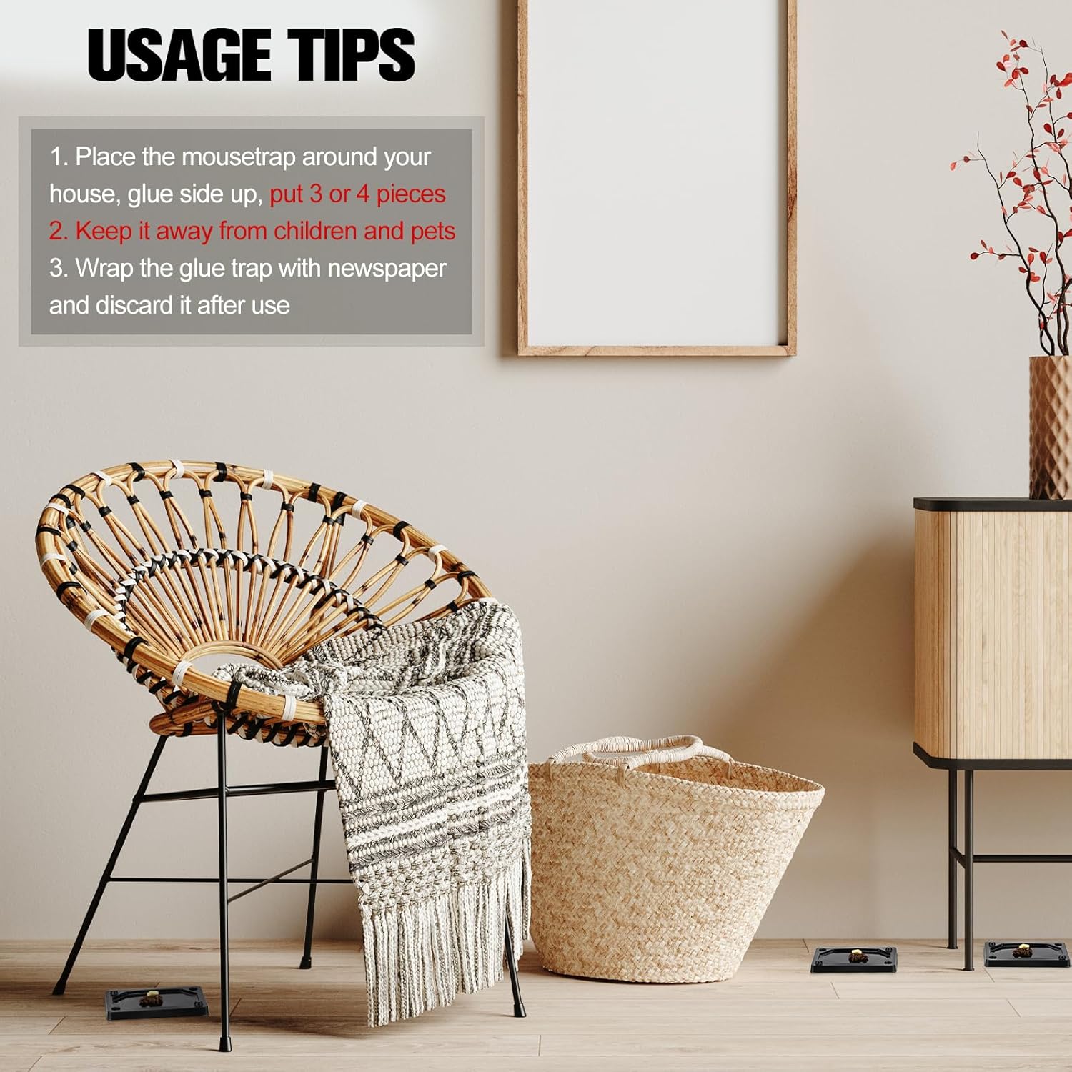 - Safe to Use: the indoor mouse sticky trap is family friendly, you can safely place it around your house, but be careful to keep it in a place away from pets; After use, wrap the glue trap in newspaper and discard