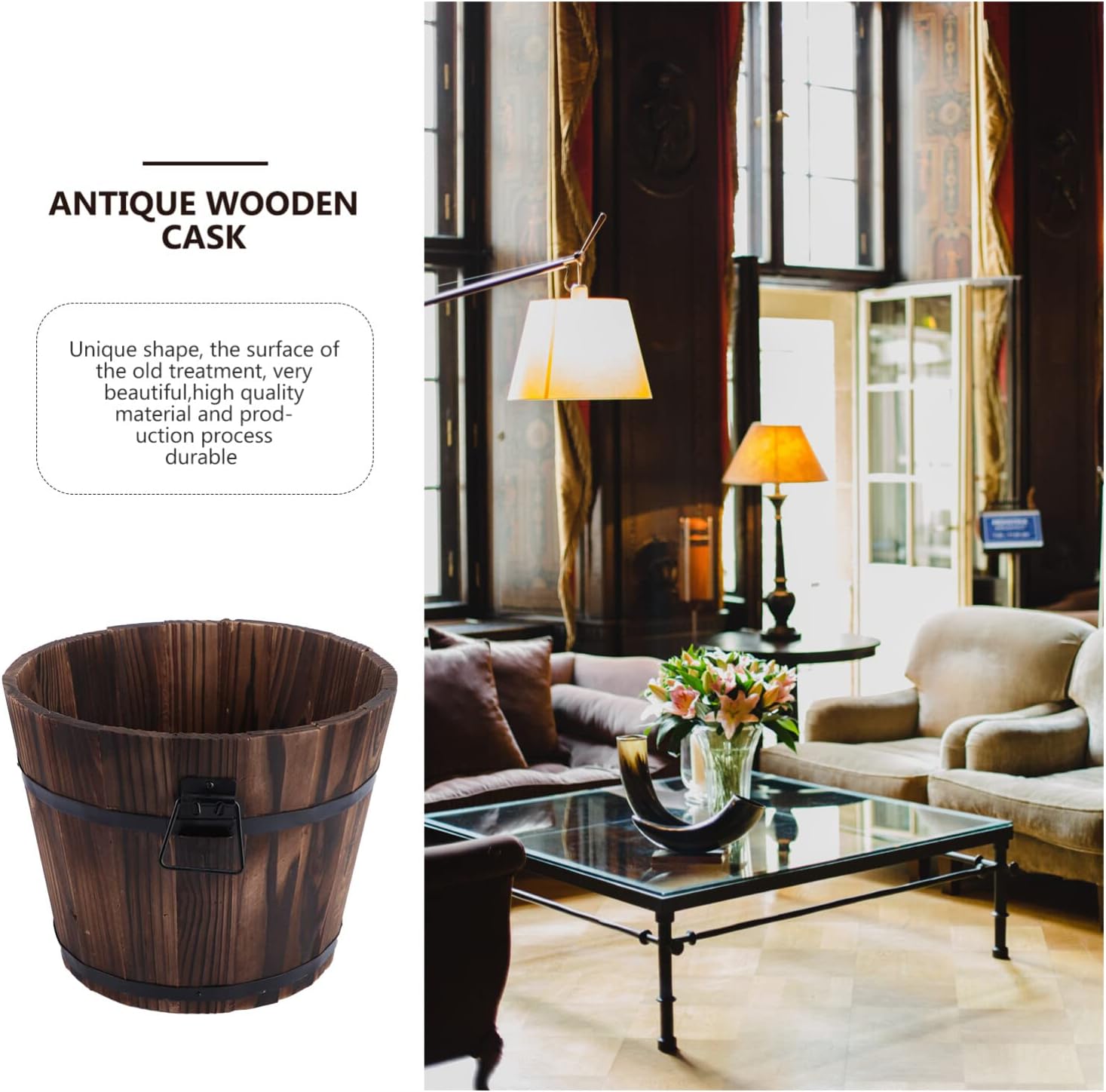 Vaguelly Rustic Wooden Barrels Planters Whiskey Barrels Bucket with Handle, Flower Planter Plant Pots Container Water Wishing Well Pail Garden Backyard Outdoor Indoor Decor