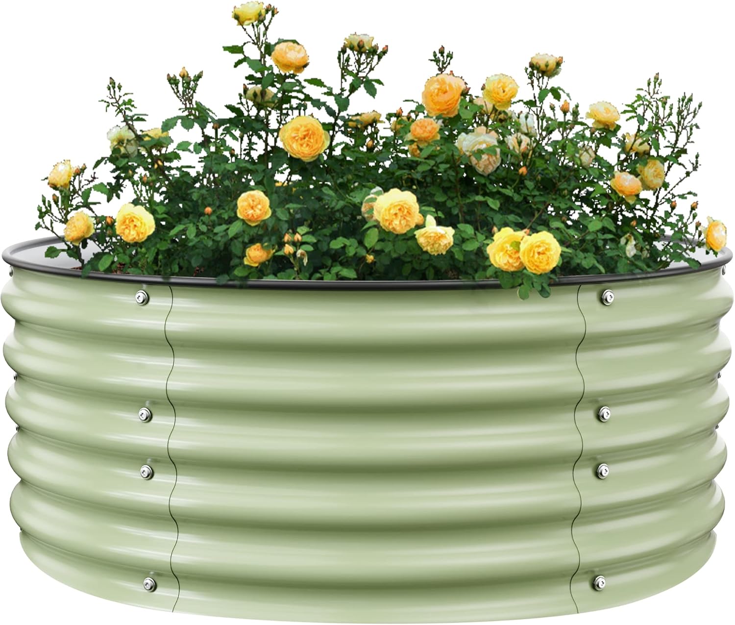 Round Raised Garden Bed Kit, 3.5x3.5x1.4Ft Outdoor Zinc-Aluminum-Magnesium Metal Flower Beds Stainless Steel Patio Ground Planter for Planting Vegetables (Light Green)