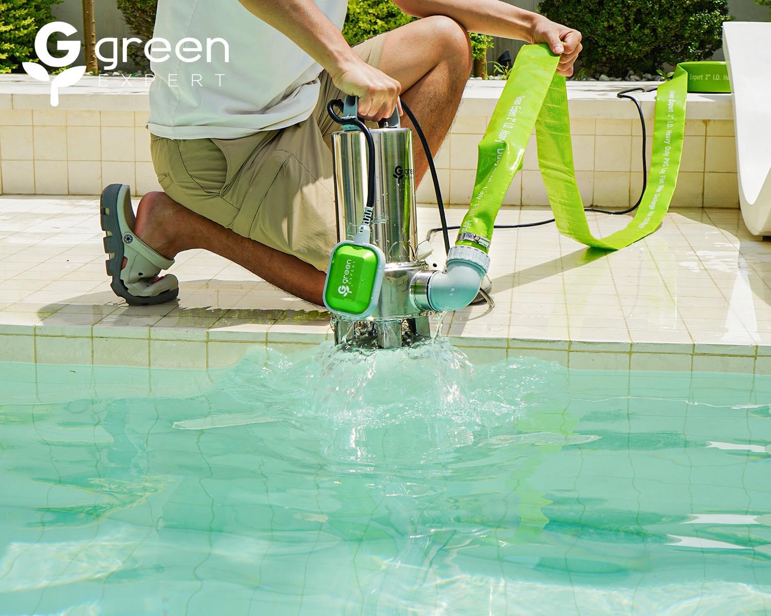 - 【Powerful Water Pump】High performance copper wiring motor produces 1.5hp great power that ensures stronger power but lower consumption, more energy-saving and quiet. Pump removes water up to 6000 gallons per hour at zero feet, 85 gallons per minute at 10 ft of discharge lift. Handles water up to 1-1/3 inch solids.