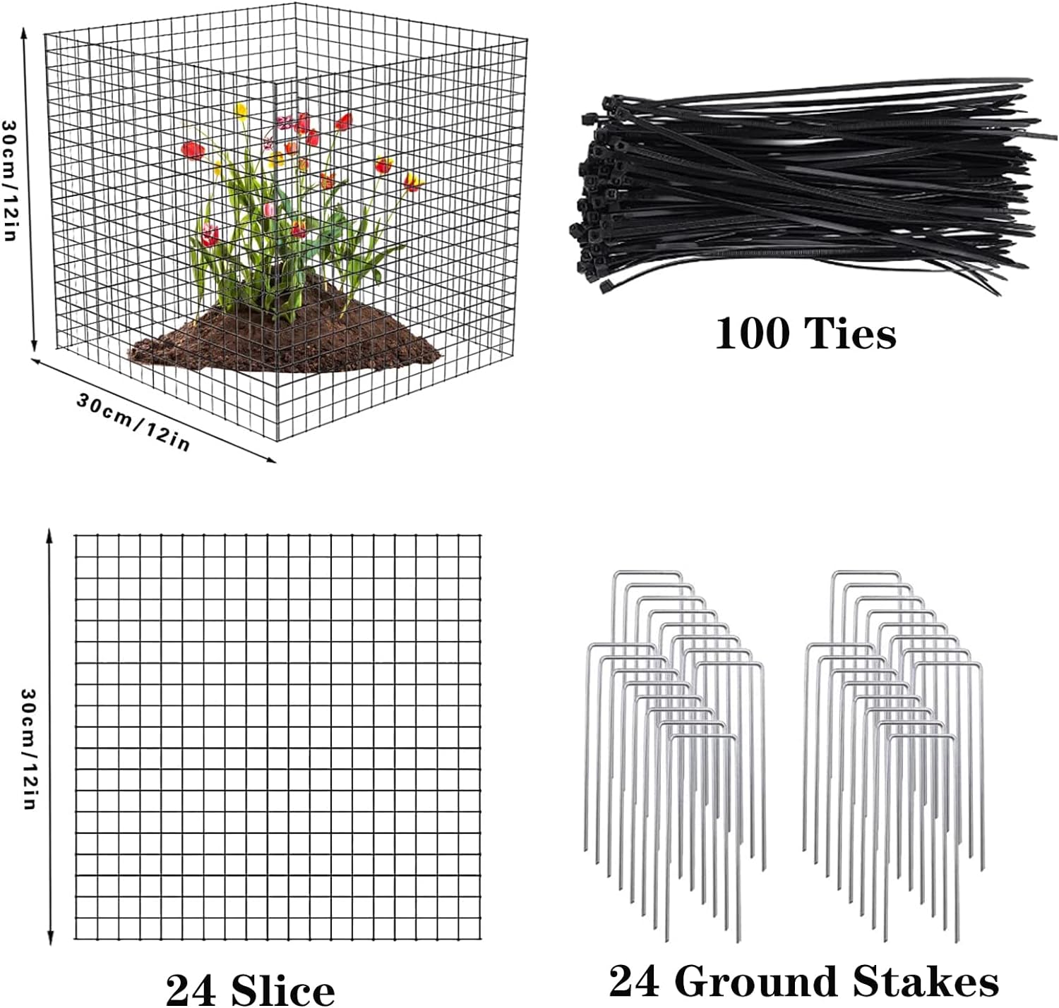 - 【PACKAGE QUANTITY】You will receive 6 sets of wire plant protectors including 24 sheets of wire mesh plant protector panels, 100 pieces of nylon ties and 24 pieces of U shaped garden stakes, which can help you to hold the guard firmly in place, the quantity is also sufficient for you to use and replace in daily life.