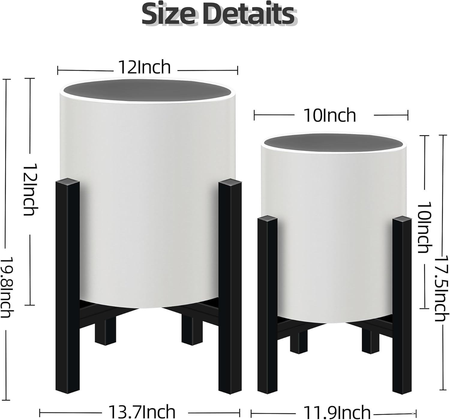 Plant Pot with Stands Set of 2, Mid Century Planters for Indoor Plants Modern Decorative Flower Pots for Balcony, Office, Living Room or Garden with Drainage Plug, 12 inch & 10 inch