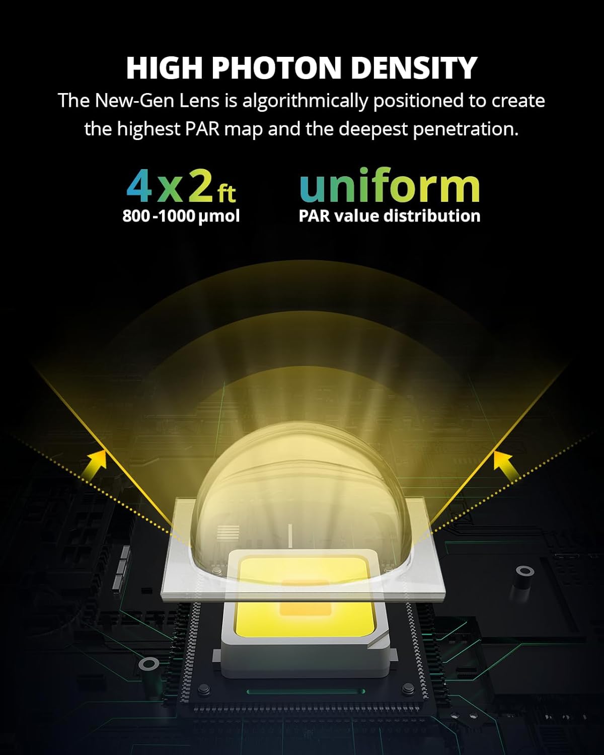 - Optical Lenses Design: Enables the XS3000 Pro LED grow lights for indoor plants to concentrate light with minimal loss, and achieve the most uniform PPFD at all corners for optimal photosynthesis, fostering balanced & healthier growth for higher yields