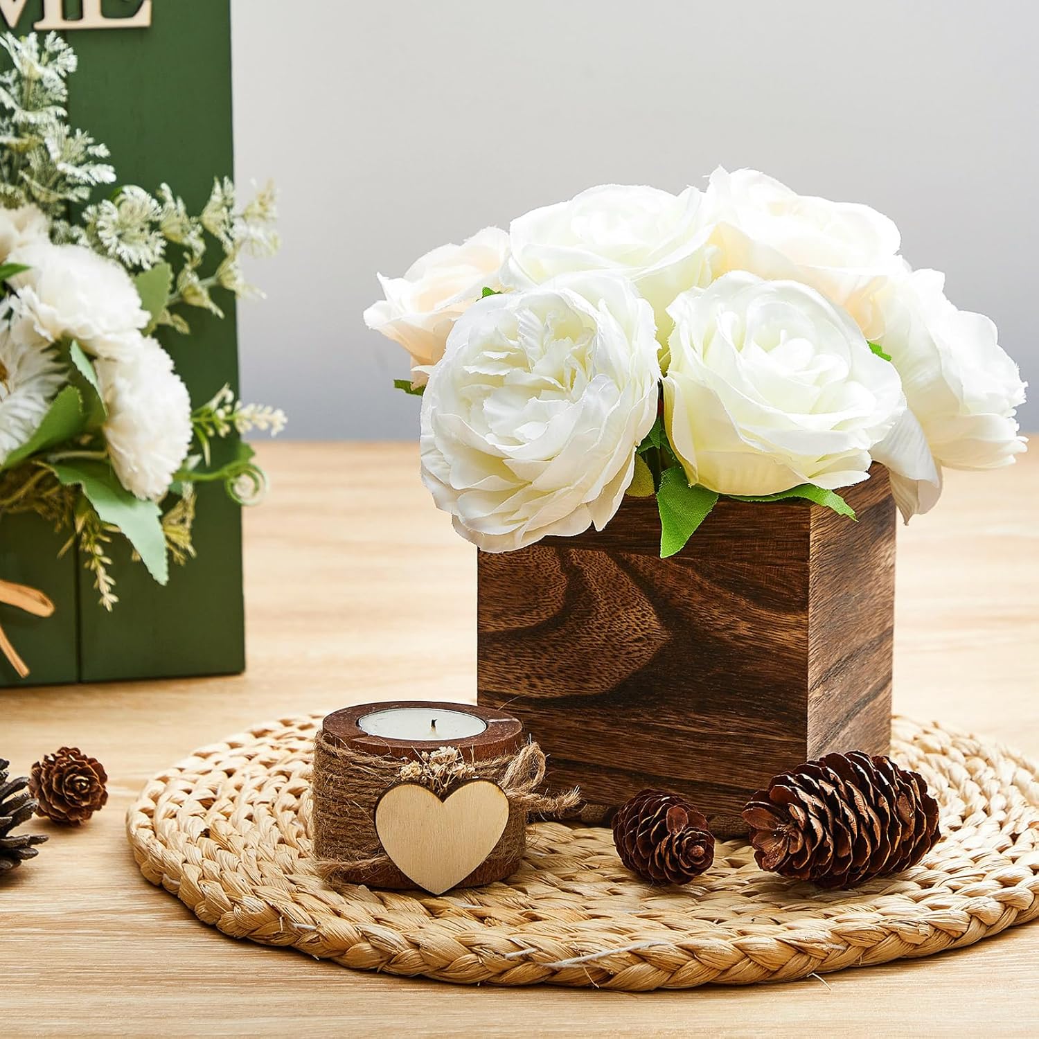 - Rustic Style: the rustic style of the square wooden box adds a touch of charm and elegance to your home decor, its natural look creates a warm and inviting atmosphere that everyone will appreciate; Warm reminder: due to the soft material of the floral clay, some dents will inevitably be caused during transportation; This is normal, please understand