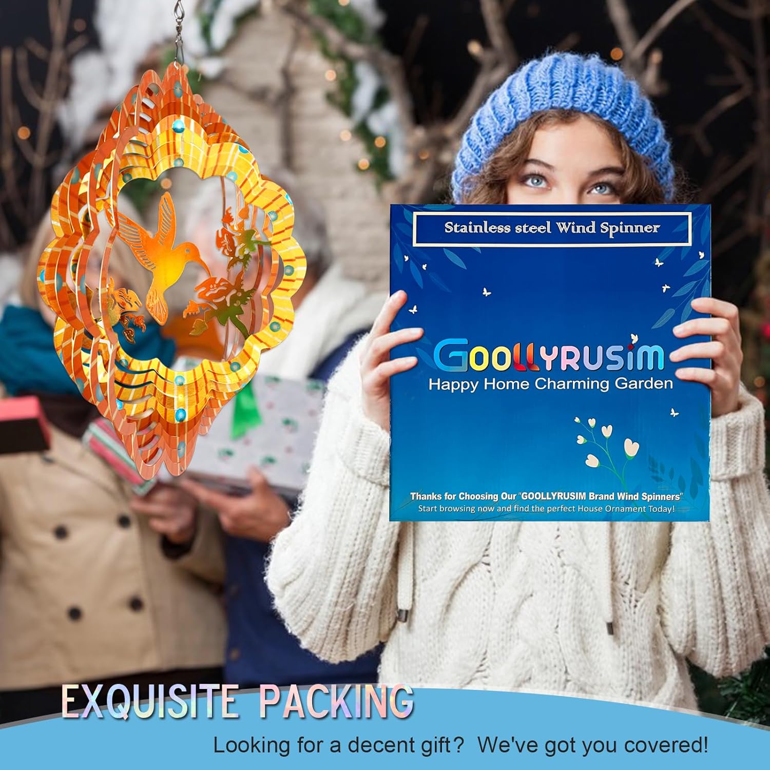Goolyrusim Hummingbird Wind Spinner, Hummingbird Gifts for Women Mem, Humming Bird Wind Spinners Outdoor, 3D Hanging Wind Sculptures, Metal Art Yard Decoration, Garden Decor, Unique Housewarming Gift