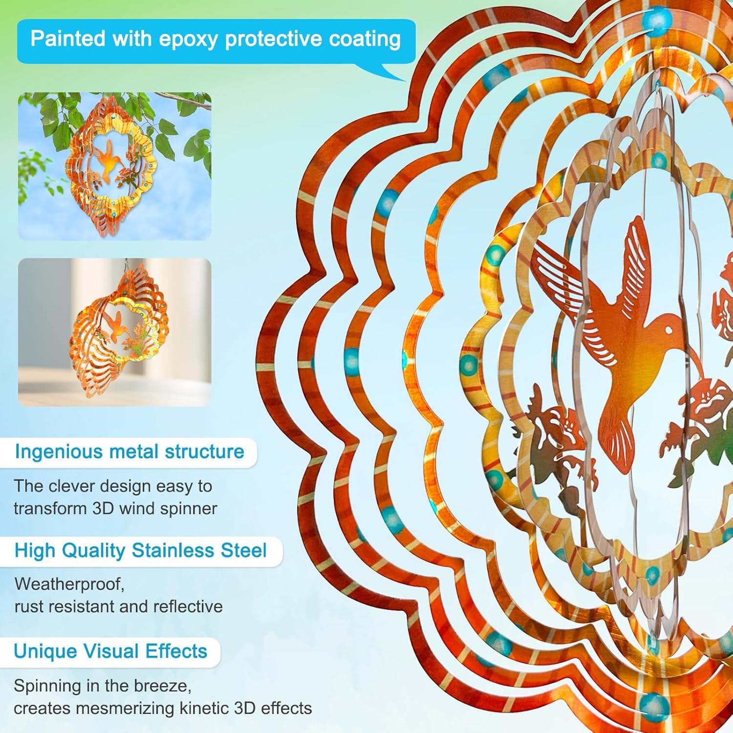 - ăKinetic Hummingbird Wind SpinnersăThe hummingbird kinetic wind spinner has a stunning hummingbird design that the unique flow of light surface adds vibrant colour and movement! This 3D hummingbird wind spinner will add charm to your garden or yard.