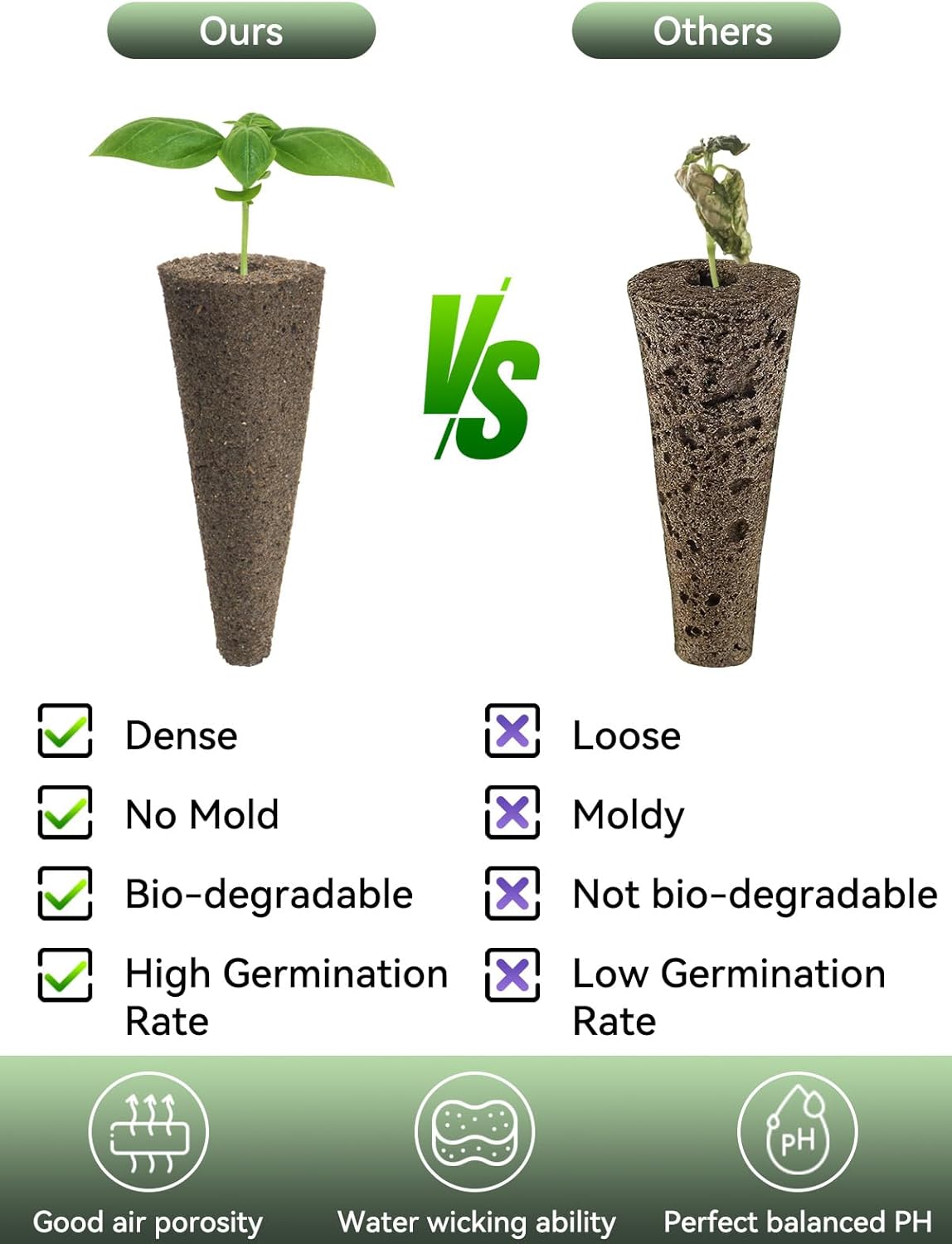 - 【Simplicity for Hassle-Free Growth】Embrace hassle-free gardening with our premium compressed peat grow sponges and 50 pod labels, which minimize light exposure to the pod medium, preventing potential harm and making cleaning a breeze