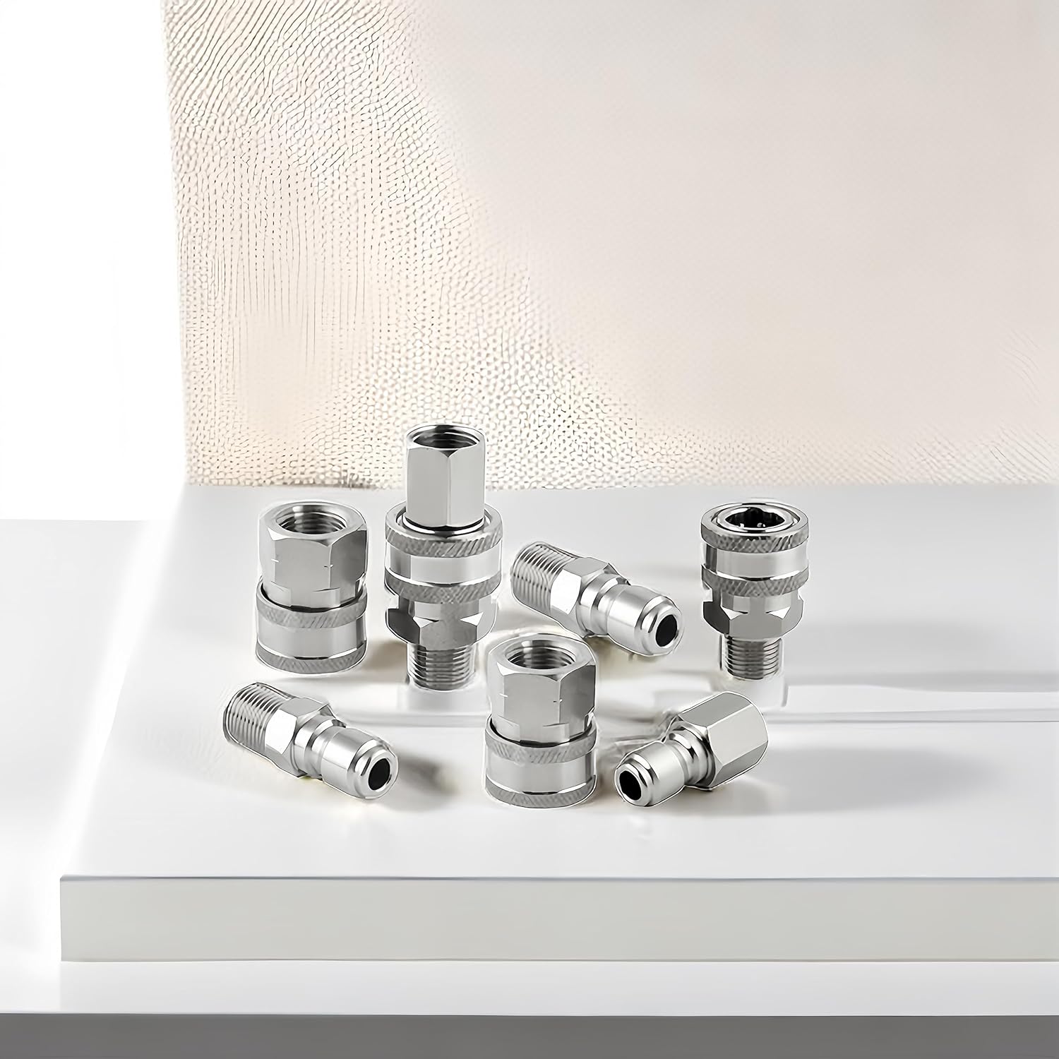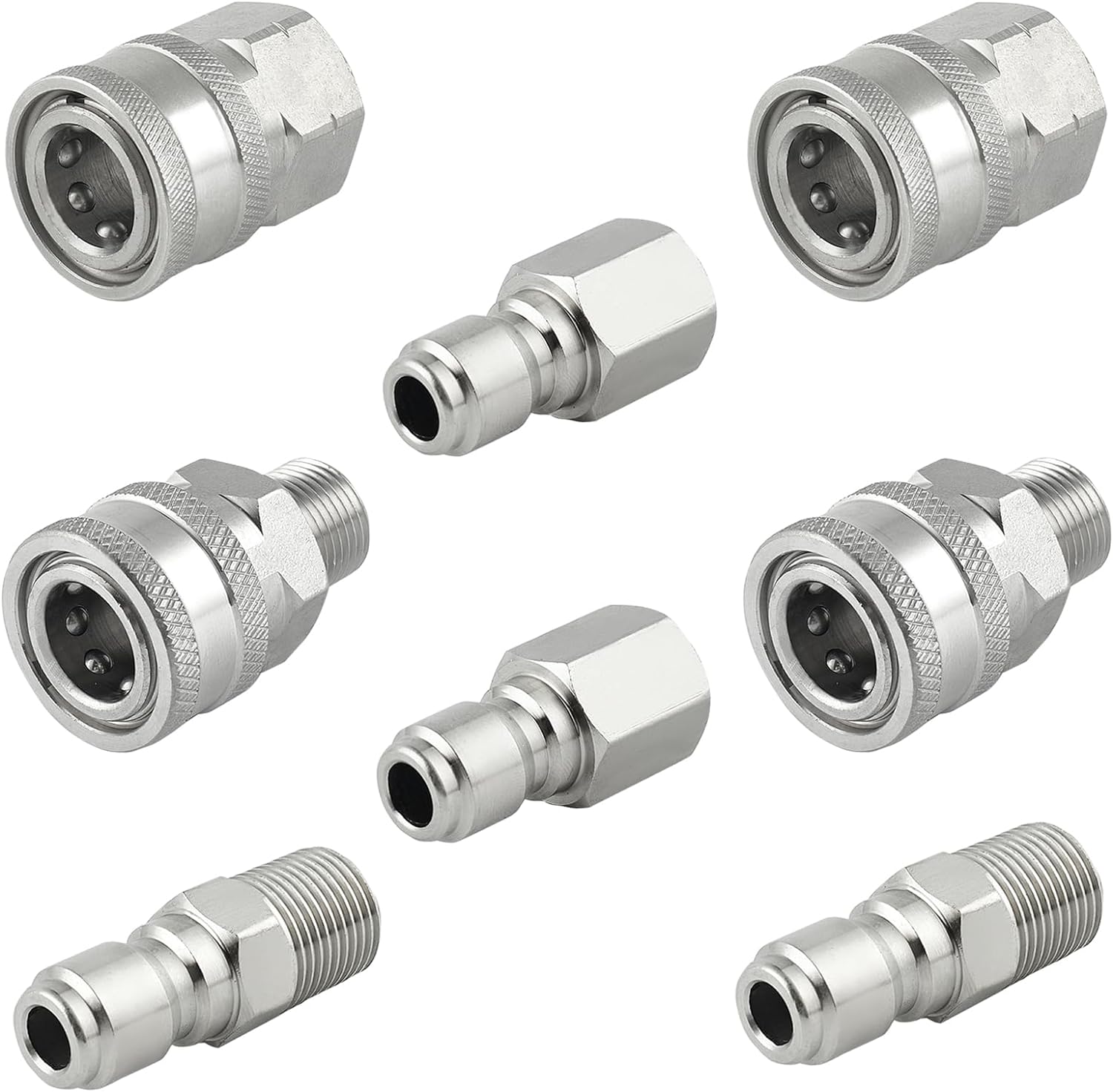 Pressure Washer Quick Connect 3/8 Inch, Pressure Washer Fittings, Stainless Steel Adapter Set, Female and Male Thread, 8 Pieces