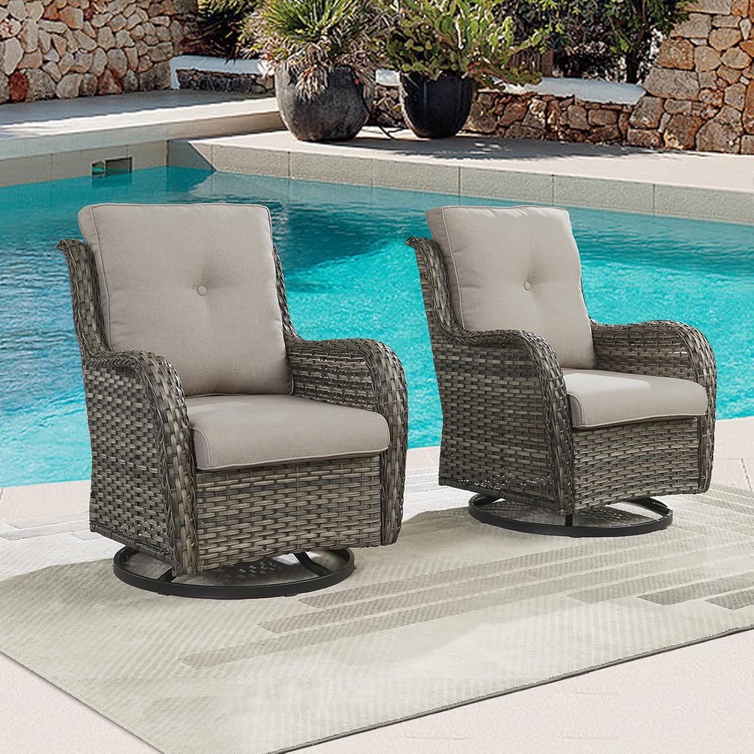 Outdoor Patio Swivel Rocker Chairs - Wicker Rattan Patio Swivel Rocking Chairs Set of 2 with High Back,Deep Seating and Comfort Cushions for Deck Porch Garden,Mixed Grey/Grey