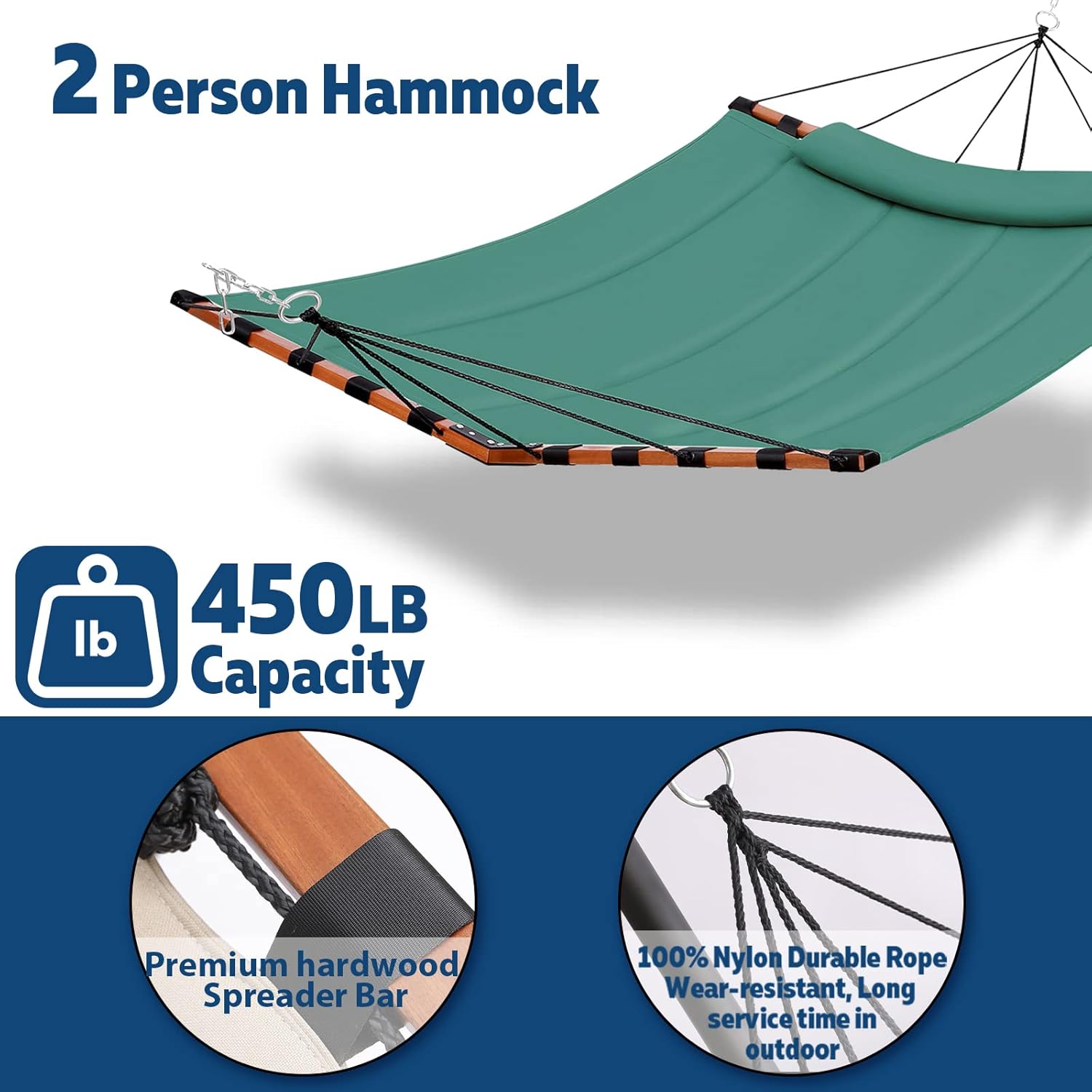 - ā Premium Weather-Resistant Polyester Fabric: Two-layer quilted fabric hammock, filled with soft padding. Resting on our hammock for a moment feel like laying on the cloud. After strict selection, we use a kind of premium polyester fabric for our hammock which has better color fastness and brings you more comfortable feeling.