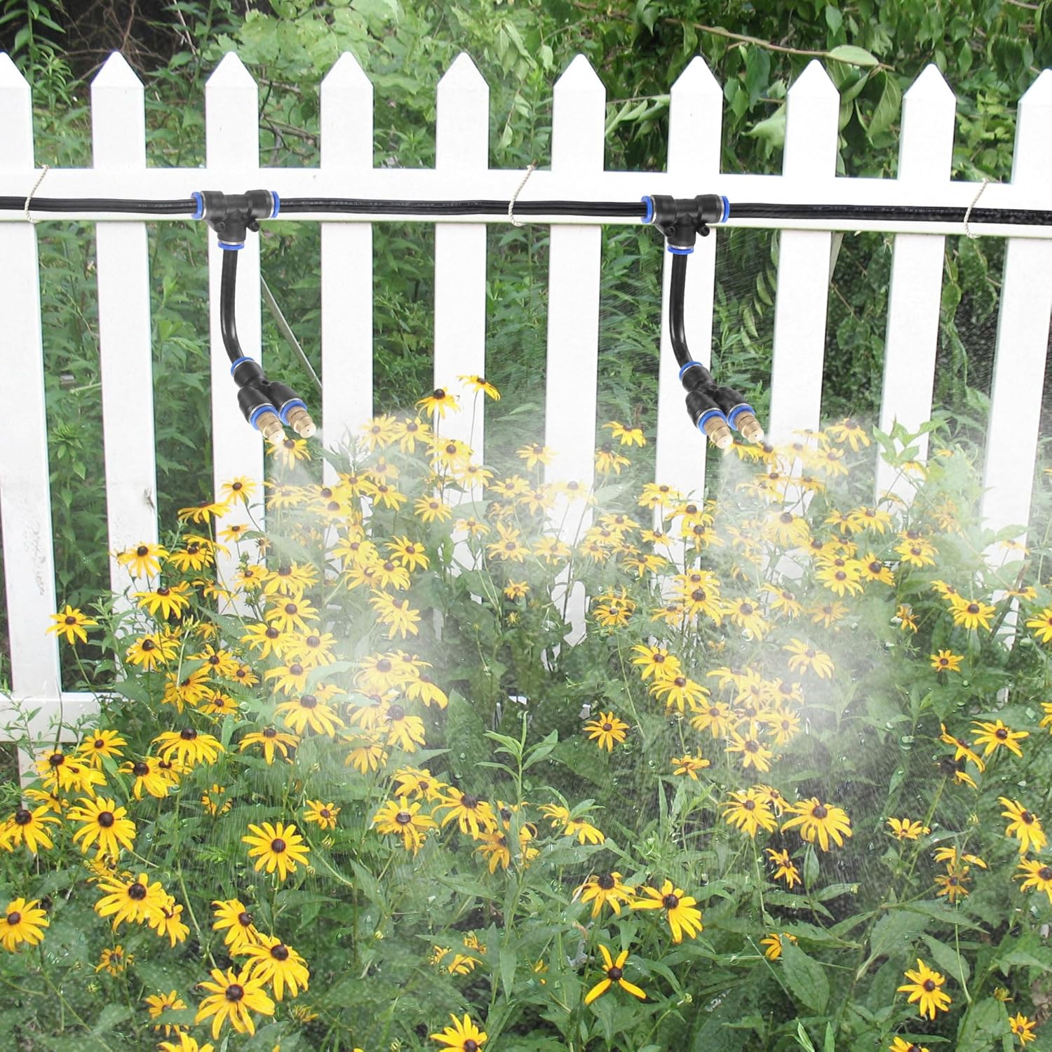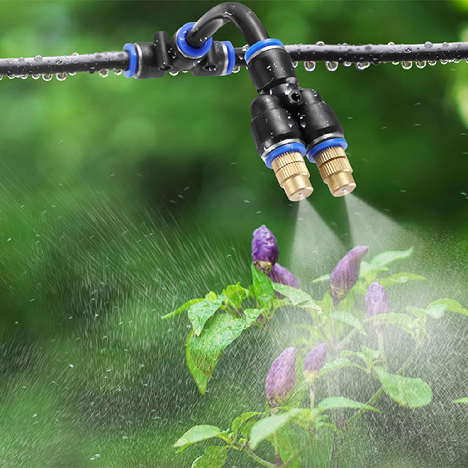 - 【Easy to Install】: Easy to install and disassemble. Tubes can be easily inserted or pulled out by pressing the blue snap button. And by twisting nozzle, you can adjust the water volume. Atomizing Misting Sprayer outer diameter: 0.35inch, orifice diameter: 1.1mm (0.043").