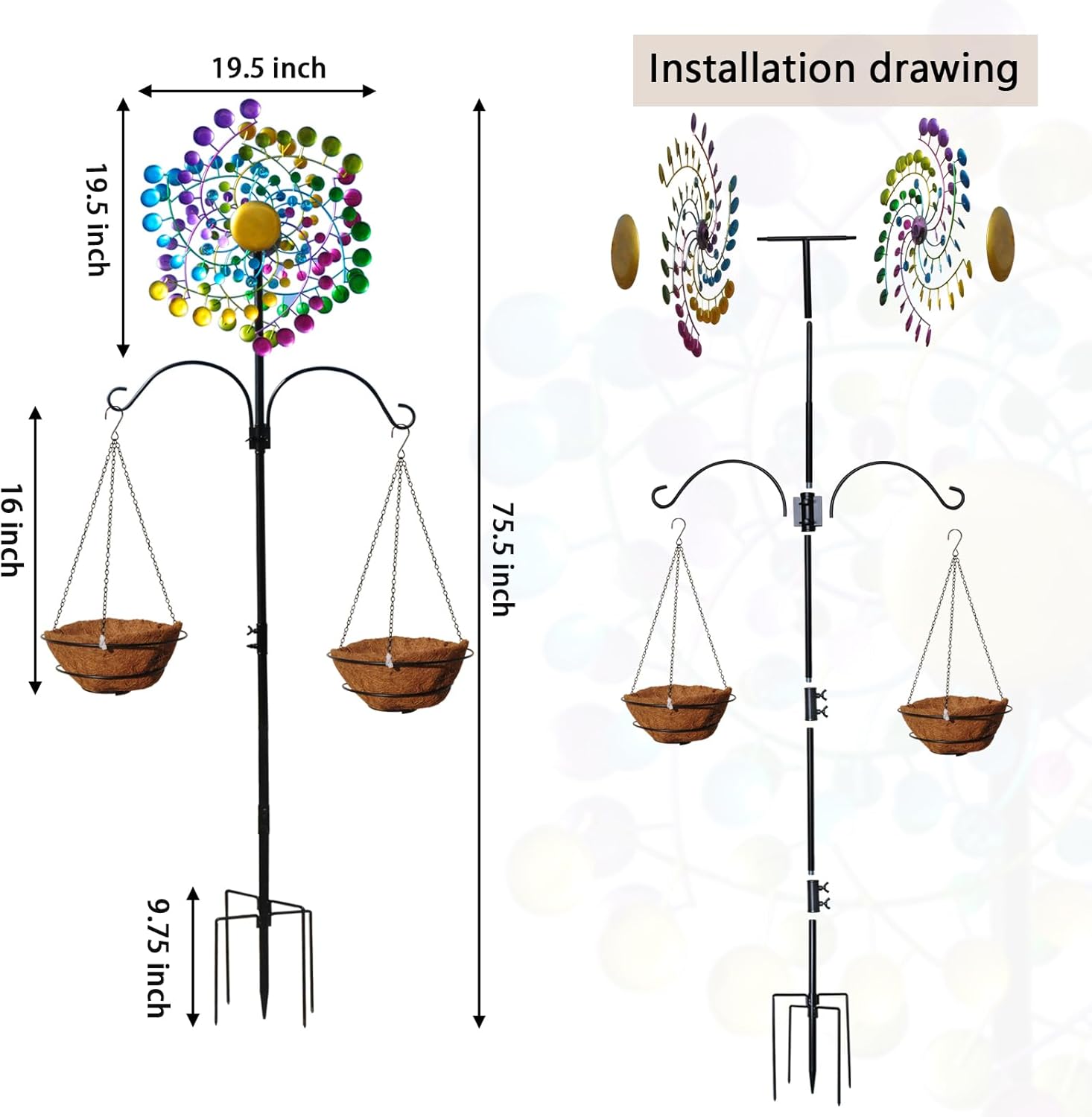 - 【Dynamic Sculpture of the Garden】 this large metal windmill wheel is made of reinforced metal materials, and the multi-layer coating process ensures that the wind wheel is not easy to rust or fade, and is durable, adding a beautiful scenery to your garden.