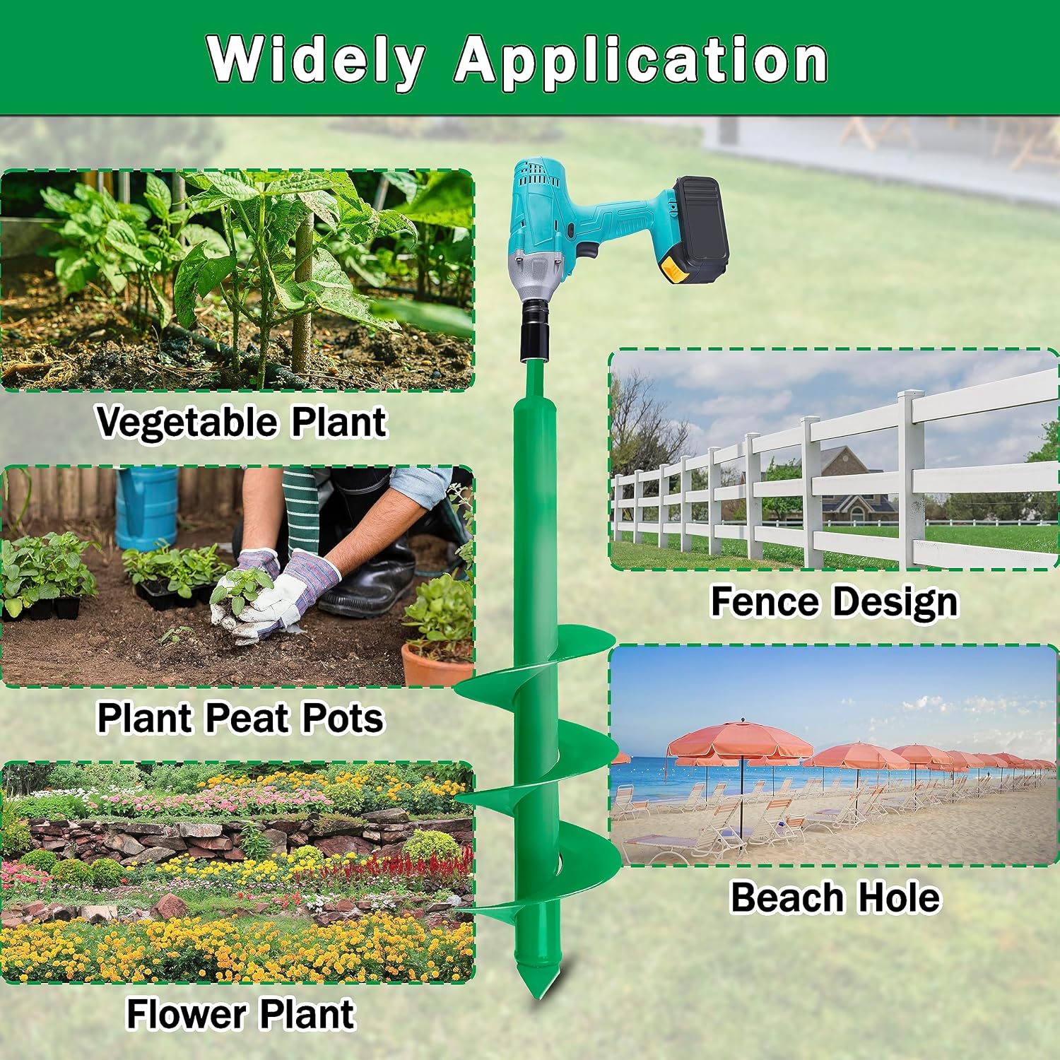 - 🌱【Widely Use】This auger drilling bit is not only widely used for planting bulbs, potted plants, vegetables, flowers, bare-root trees, shrubs, etc., but also can be used for fixing fences, beach umbrellas, hole building tents, etc.