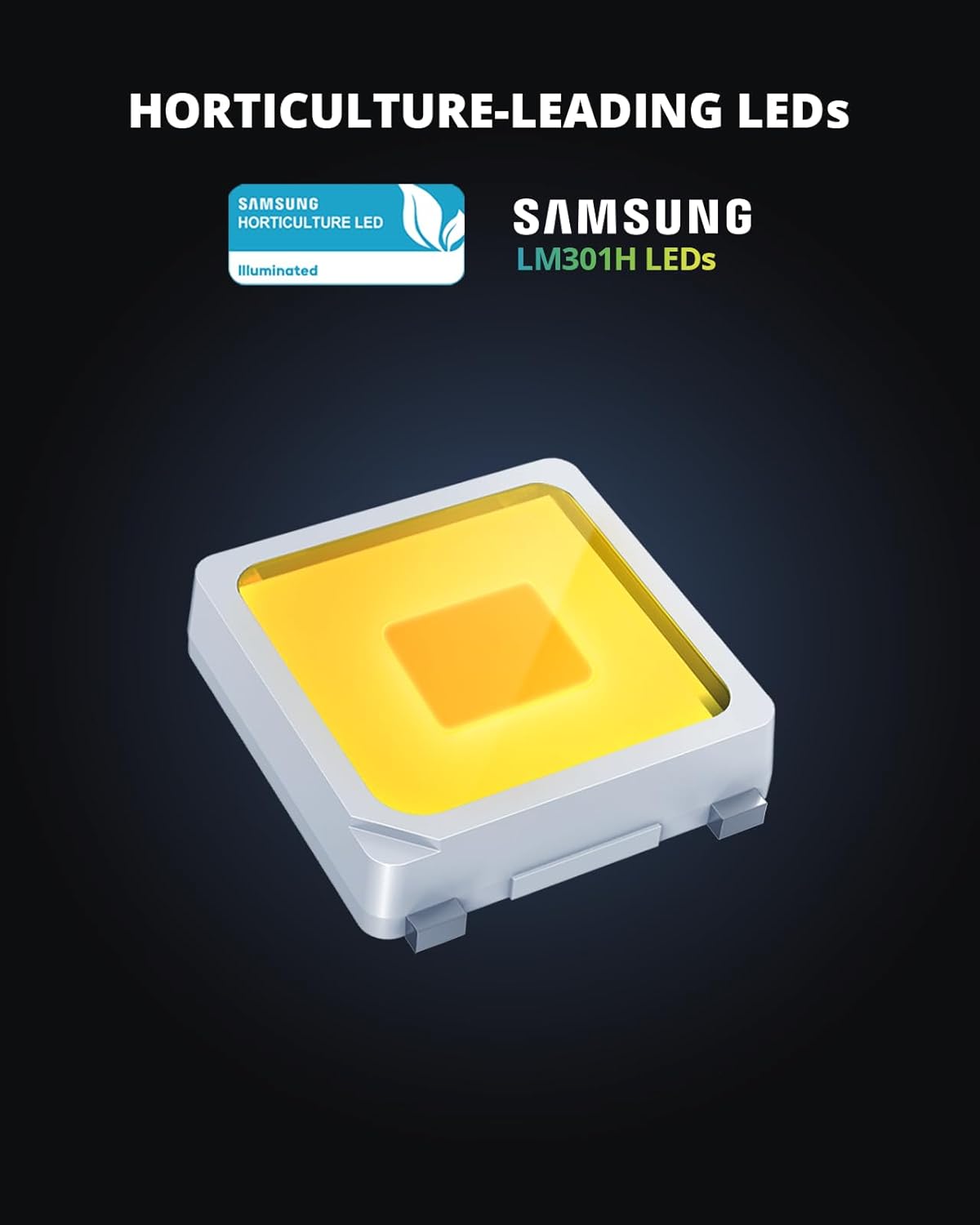 - Top 4x2 Grow Light: Use Samsung LM301H diodes with upgraded scientific distribution for more even PAR map & deeper canopy penetration; daisy chain max 20pcs XS2500 for commercial, horizontal or vertical farming, greenhouse planting and hydroponics growing