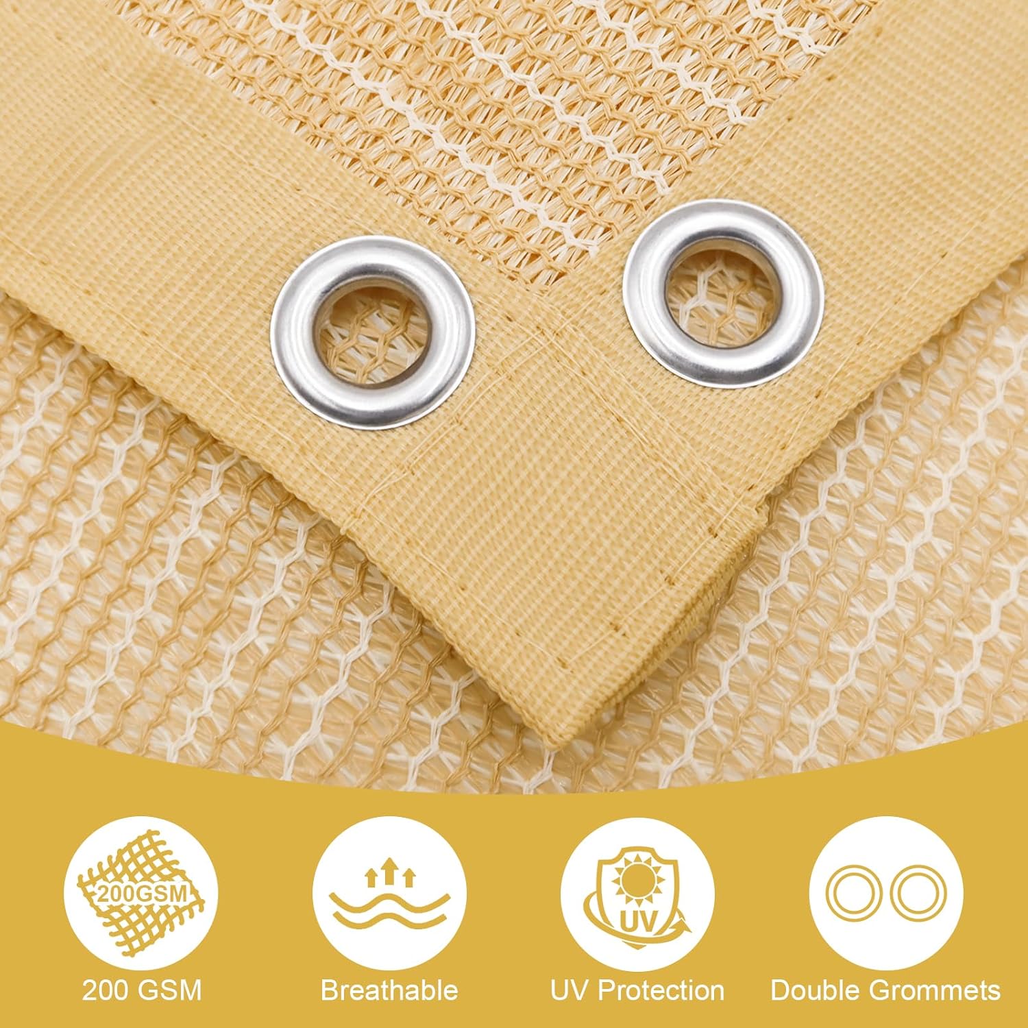 - Premium Shade Fabric: Crafted from 200GSM high-Density polyethylene (HDPE) material, the sun shade cover is built to last. HDPE is known for its exceptional strength, durability, and resistance to wear and tear, ensuring that your outdoor shade cloth will stand the test of time. This lightweight breathable shade fabric also provides maximum airflow and stretch-ability