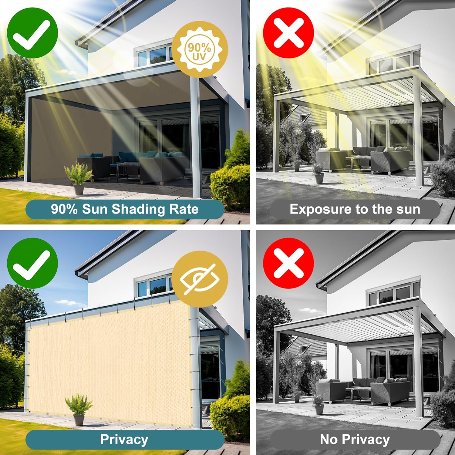 - Multiple Applications: This shade trap screen creates a comfortable outdoor seating area for you, offers a level of privacy from the outside without completely blocking your view of it. You can also use it to shield your greenhouse and plants from excessive sun exposure, or cover your pet house. Don't let the sun dictate your outdoor activities; take control with Shade&Beyond premium shade solution