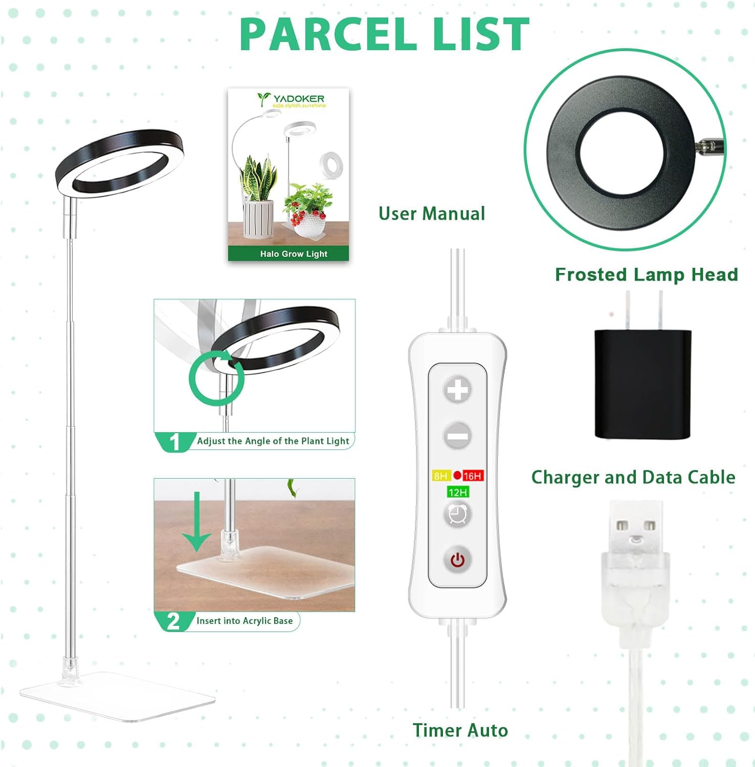 Plant Grow Light,yadoker LED Growing Light Full Spectrum for Indoor Plants,Height Adjustable, Automatic Timer, 5V Low Safe Voltage,Idea for Small Plant Light